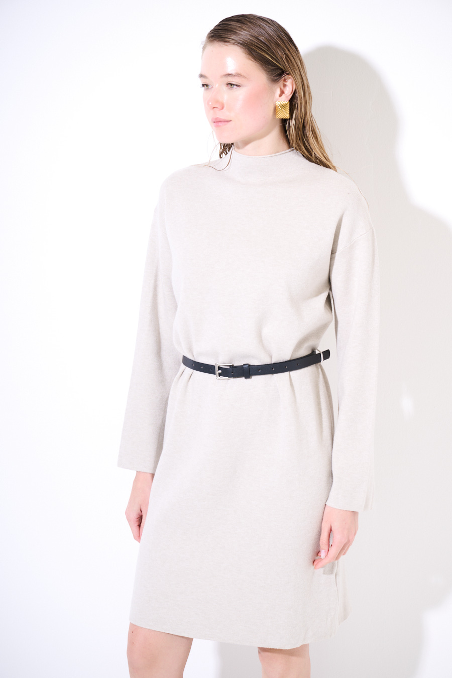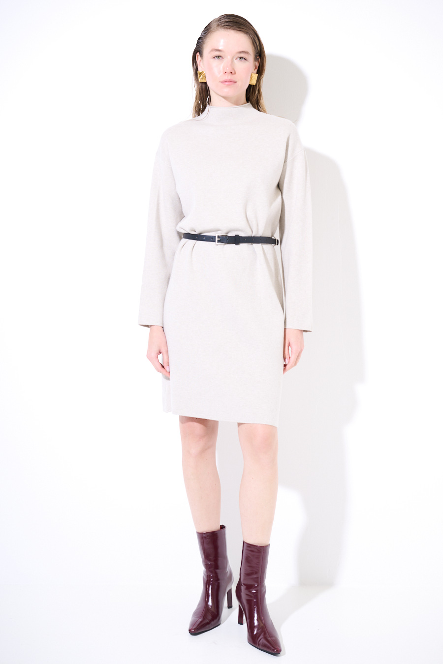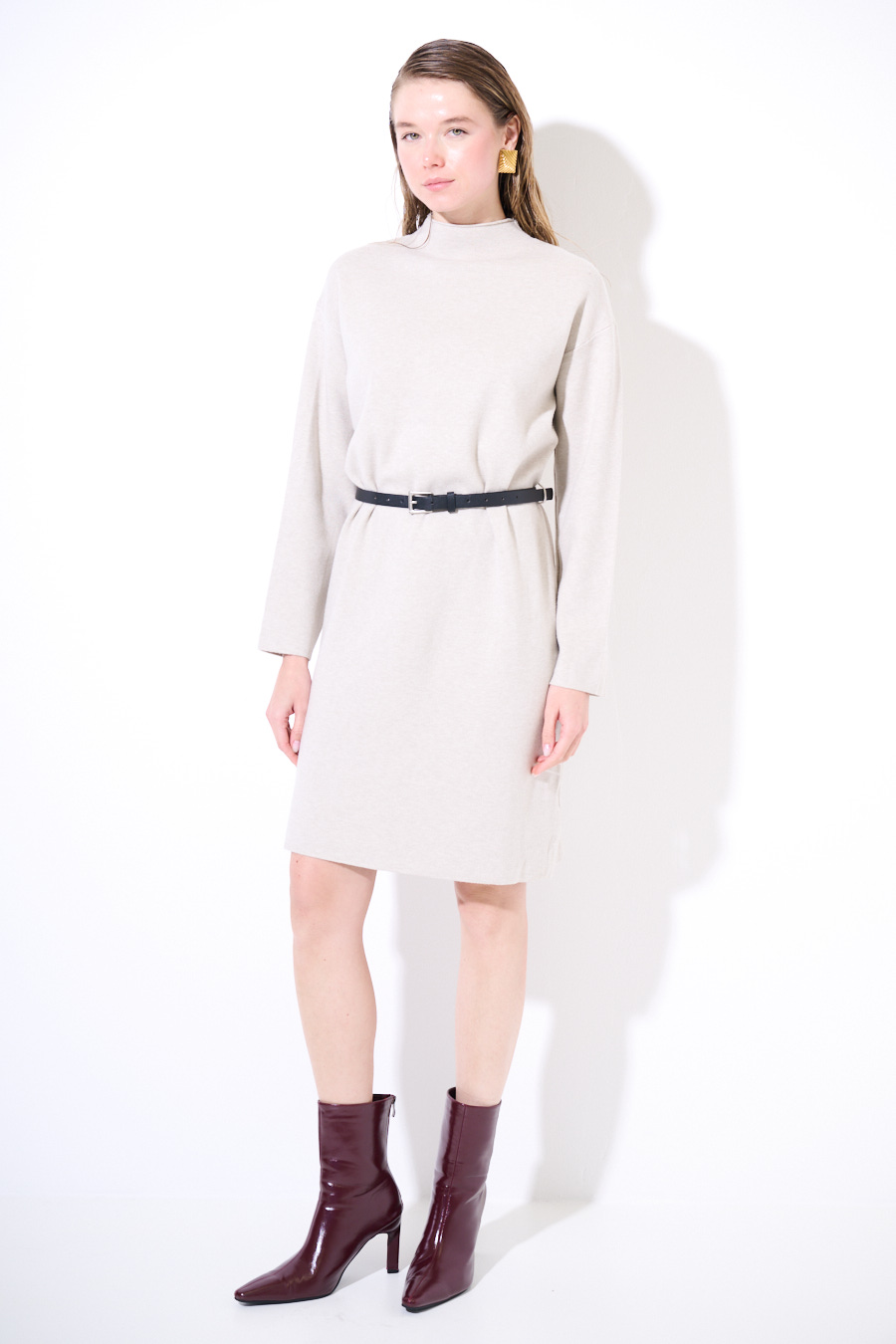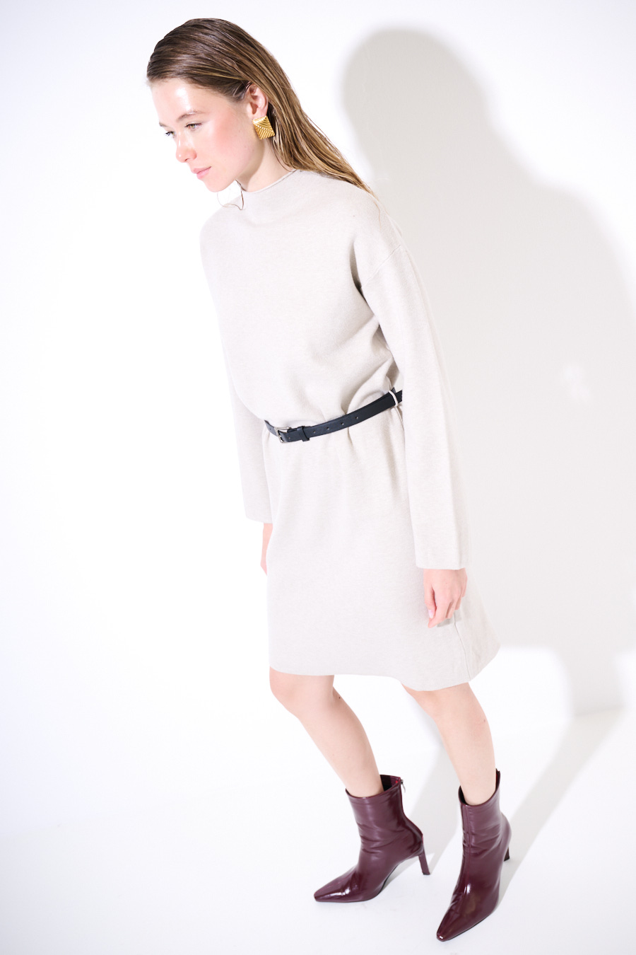 ABITO COLLO CRATERE CON CINTURA BEIGE
