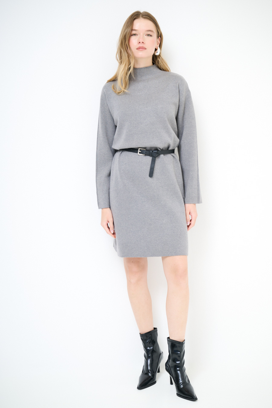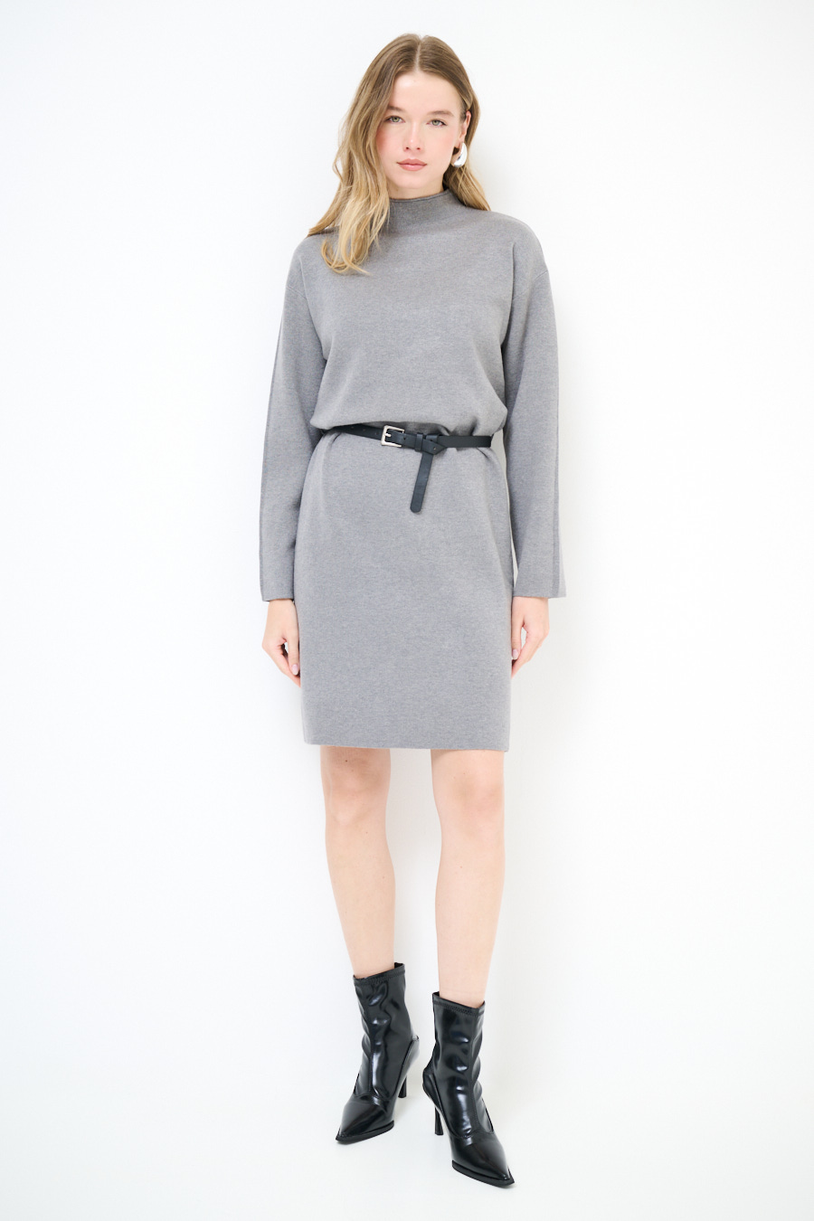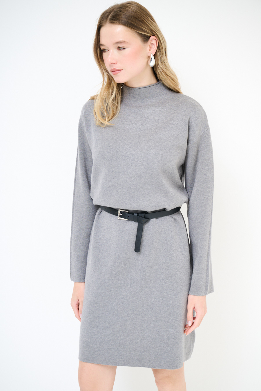 ABITO COLLO CRATERE CON CINTURA GRIGIO