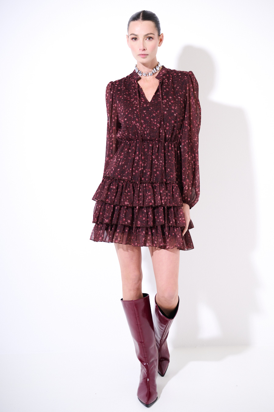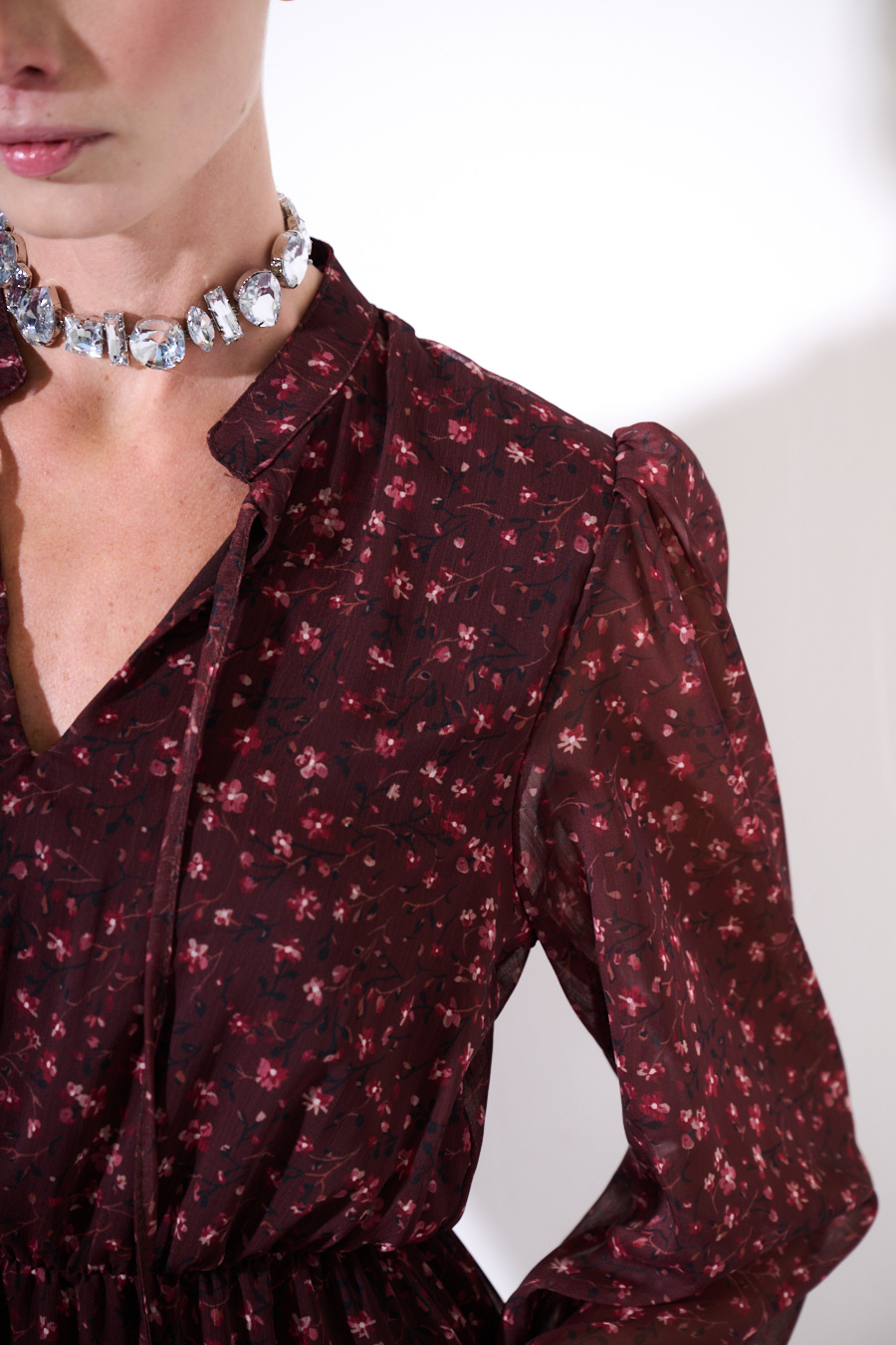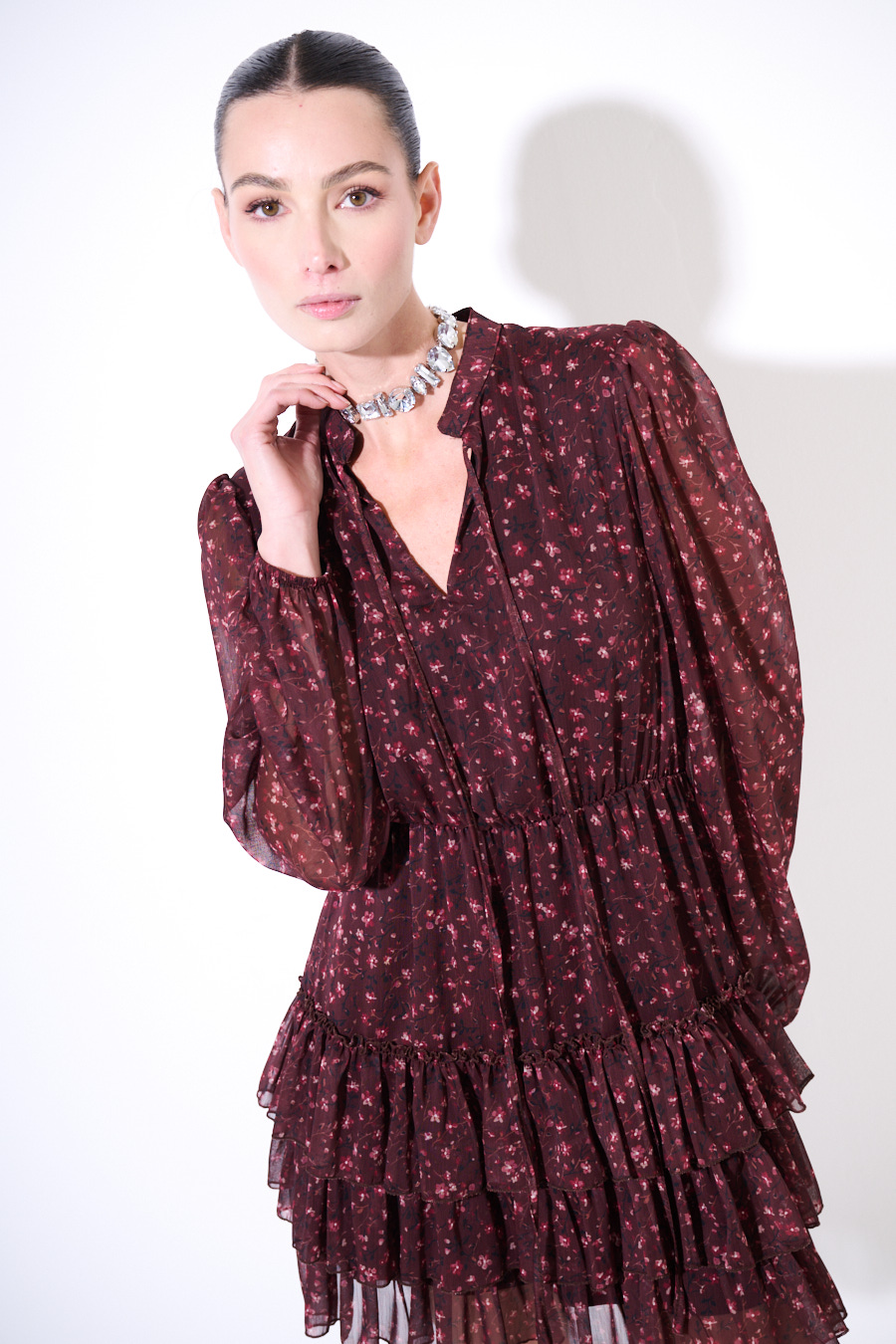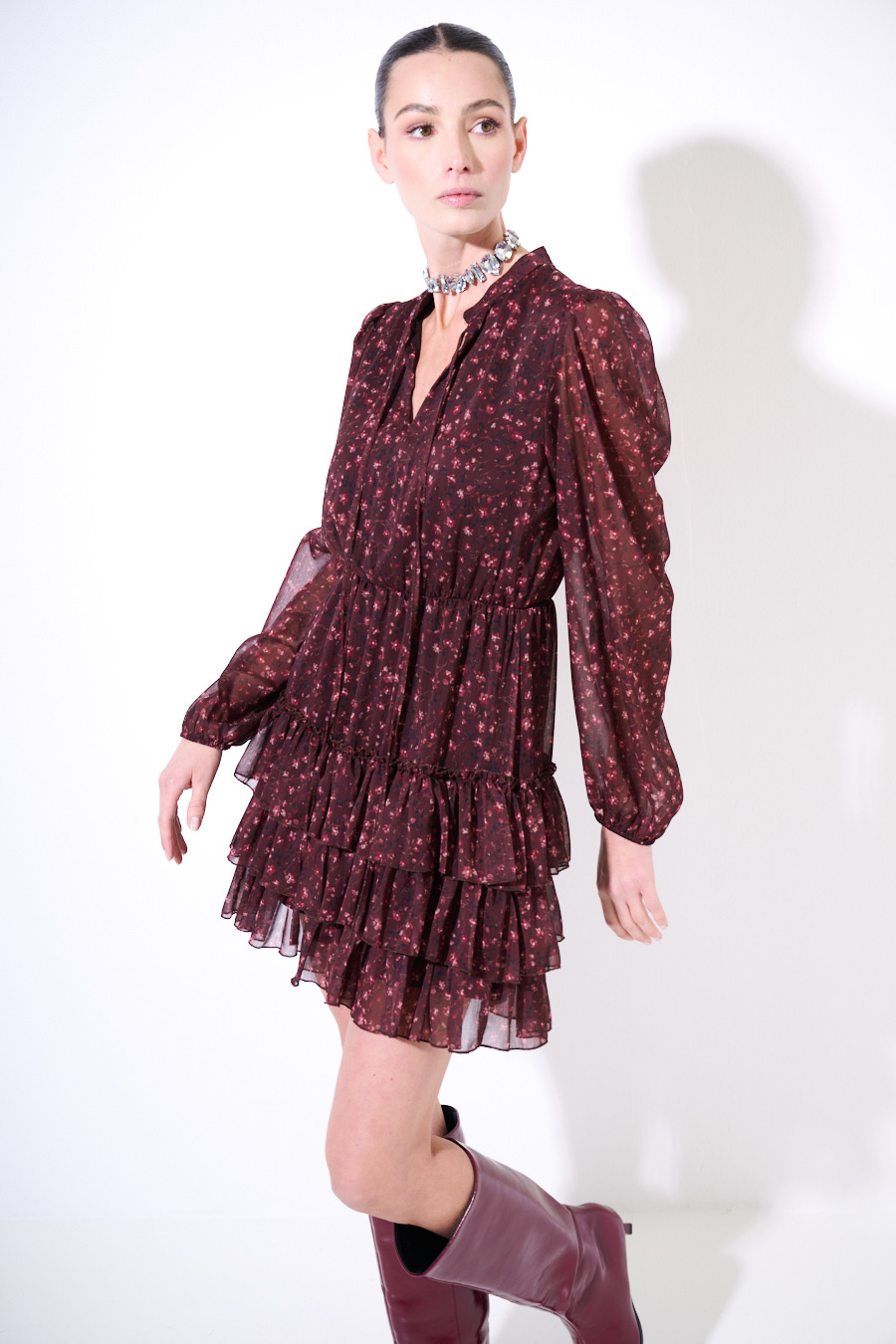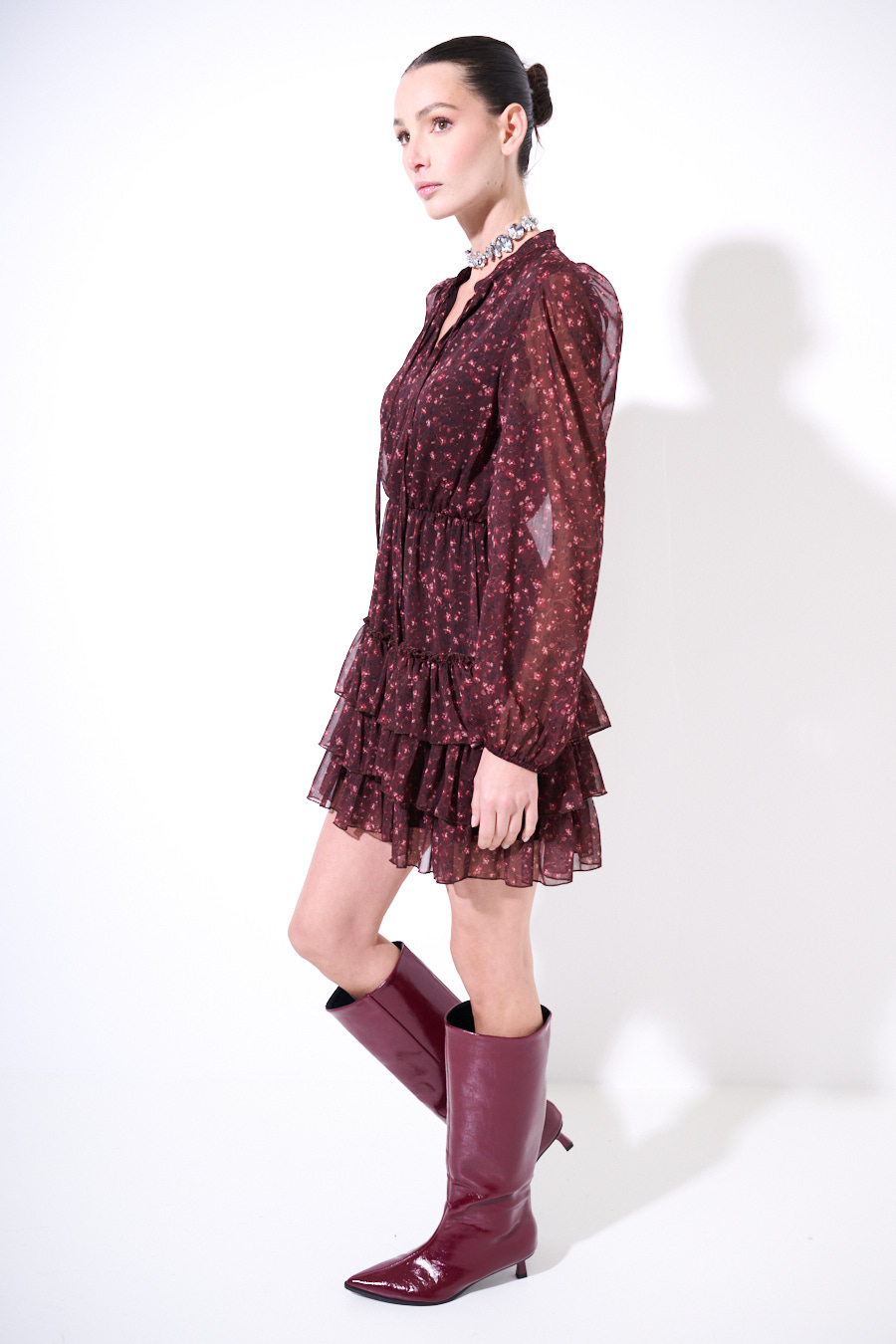 ABITO CORTO DOPPIA BALZA STAMPA BORDEAUX
