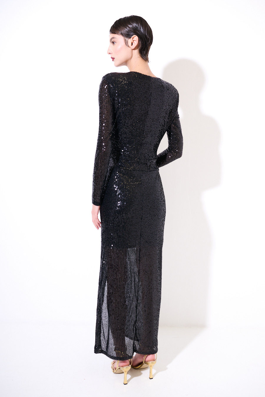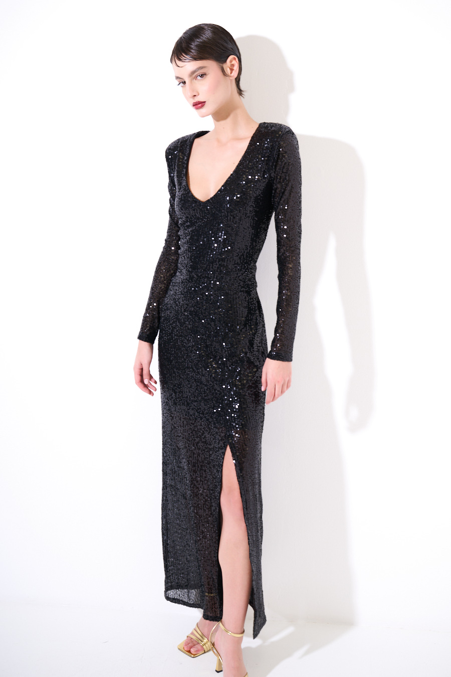 ABITO LUNGO CON SPACCO PAILLETTES NERO