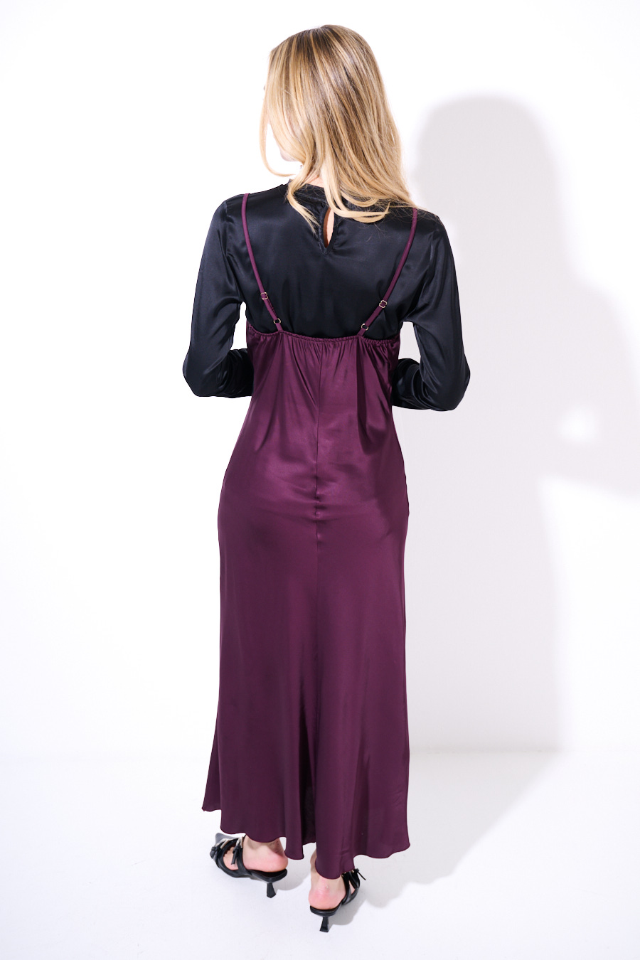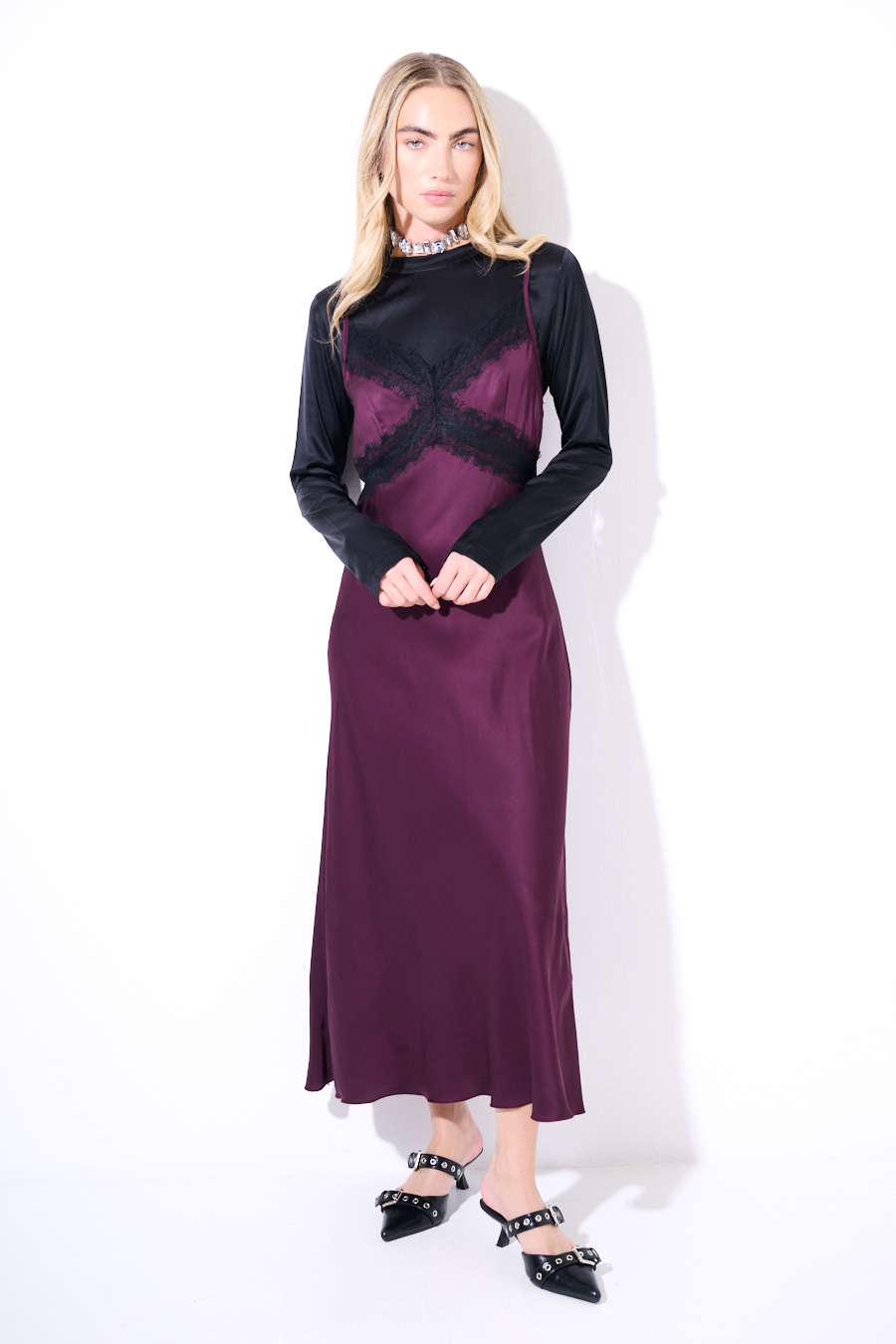 ABITO LUNGO RASO CON PIZZO VINO