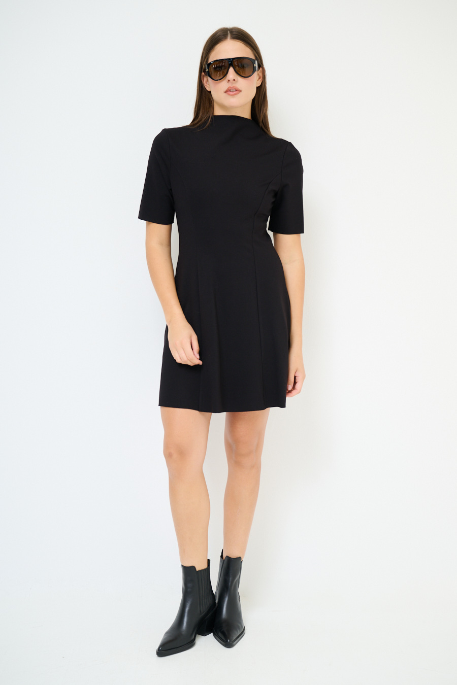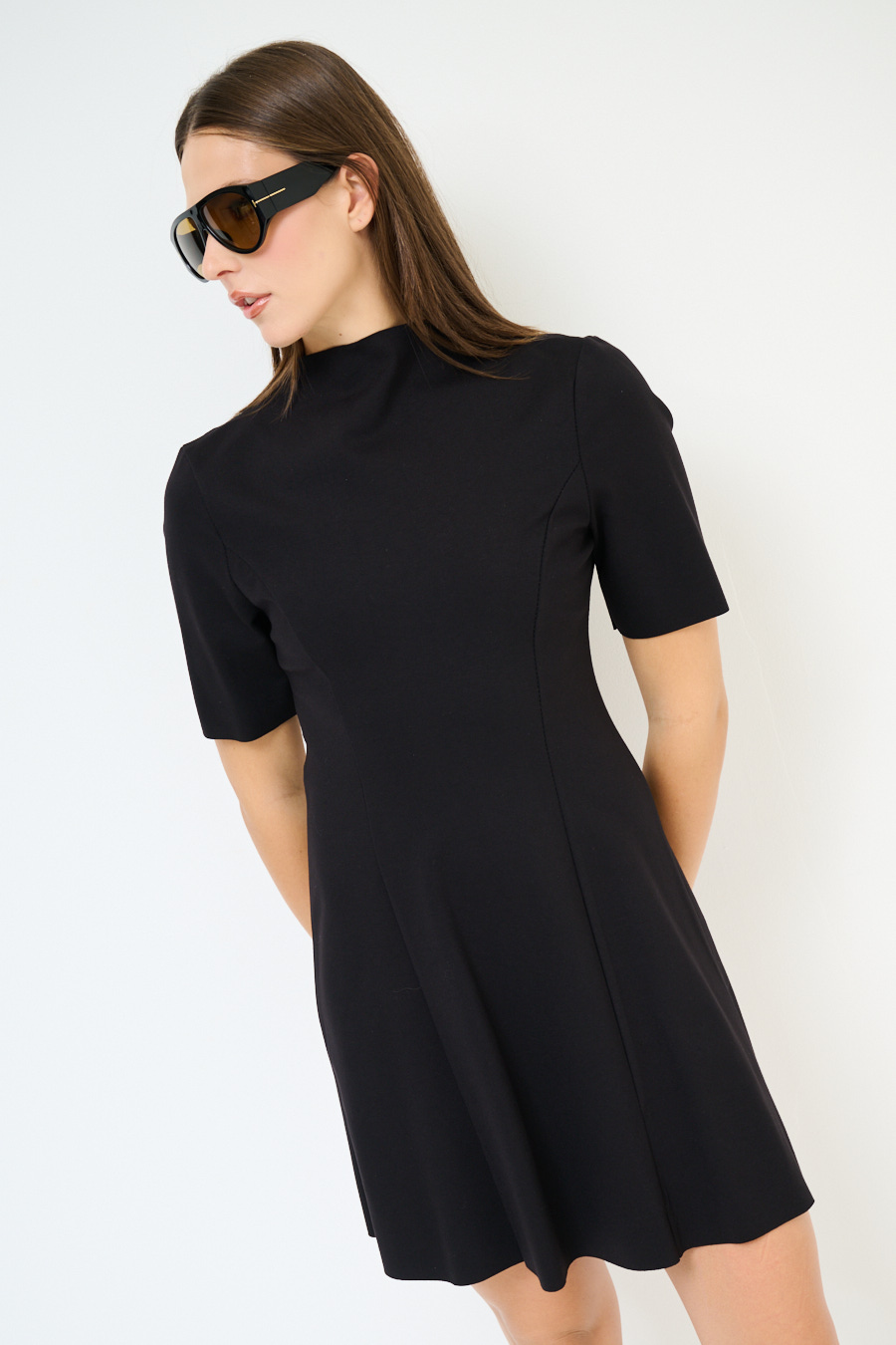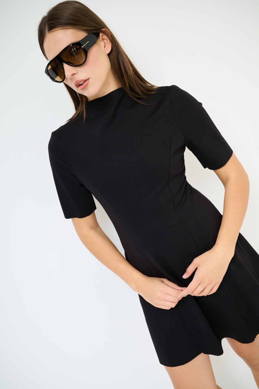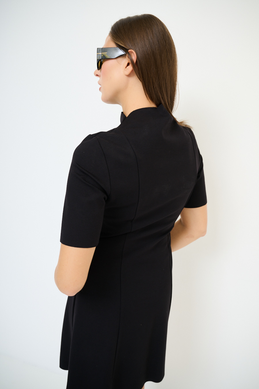 Abito midi sfiancato a mezza manica con colletto a cratere in tessuto elasticizzato.