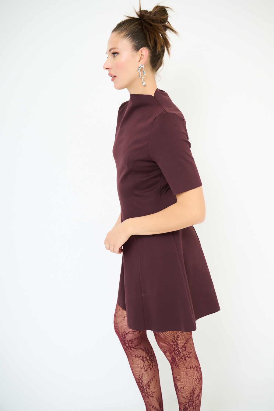 Abito midi sfiancato a mezza manica con colletto a cratere in tessuto elasticizzato.