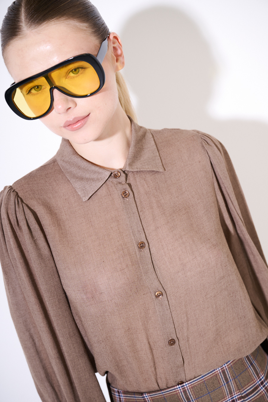 CAMICIA BASIC CON PIEGHE SPALLE GARZA MISTO LANA BEIGE