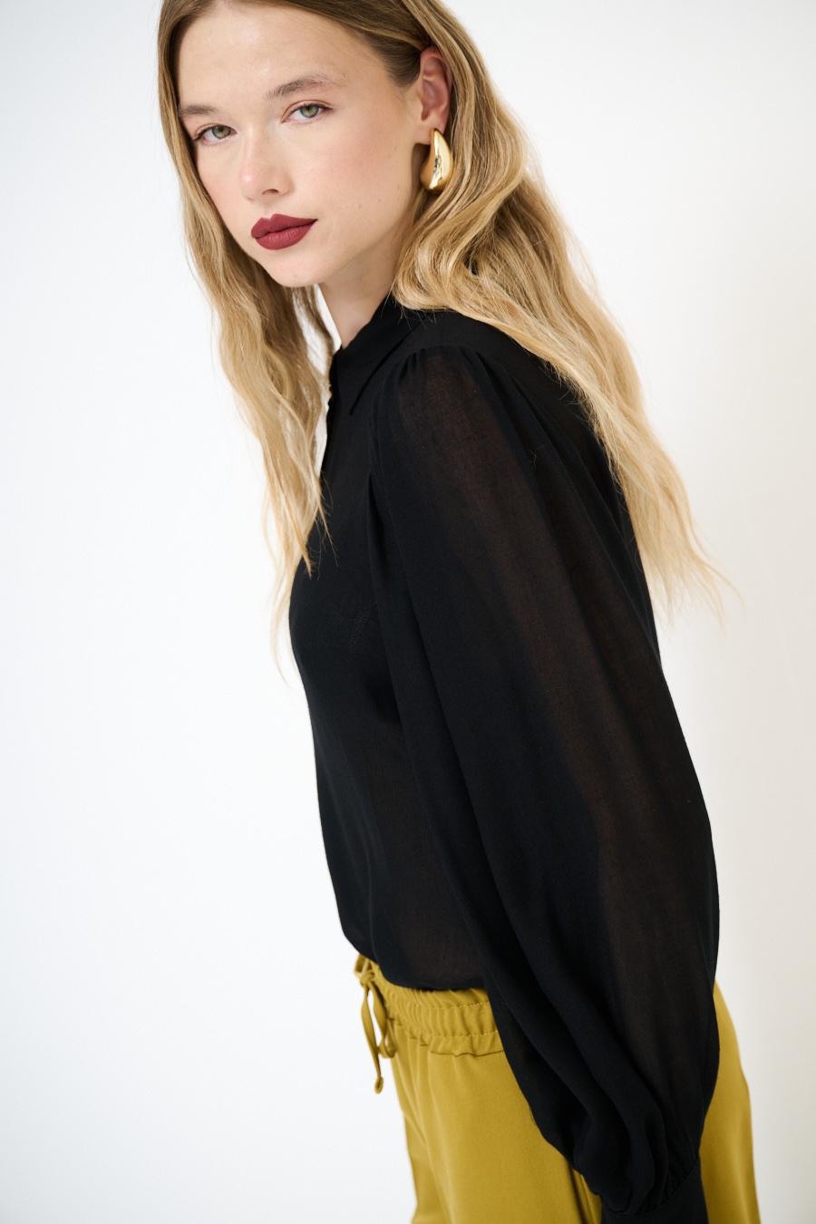 Camicia semitrasparente basic con pieghe sulla spalla in misto lana.