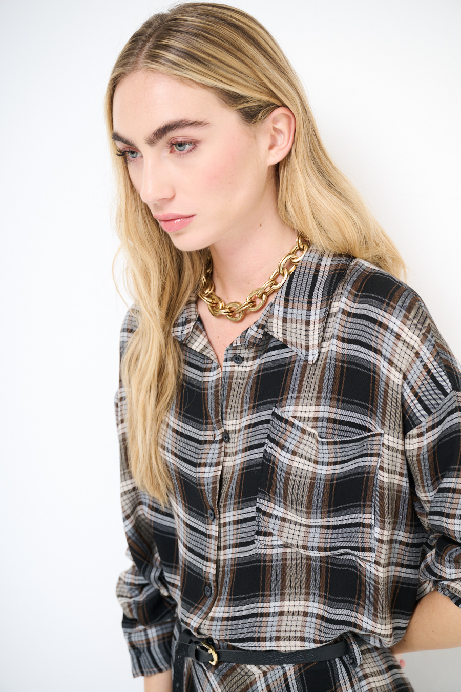 Camicia check over e più lunga sul retro.