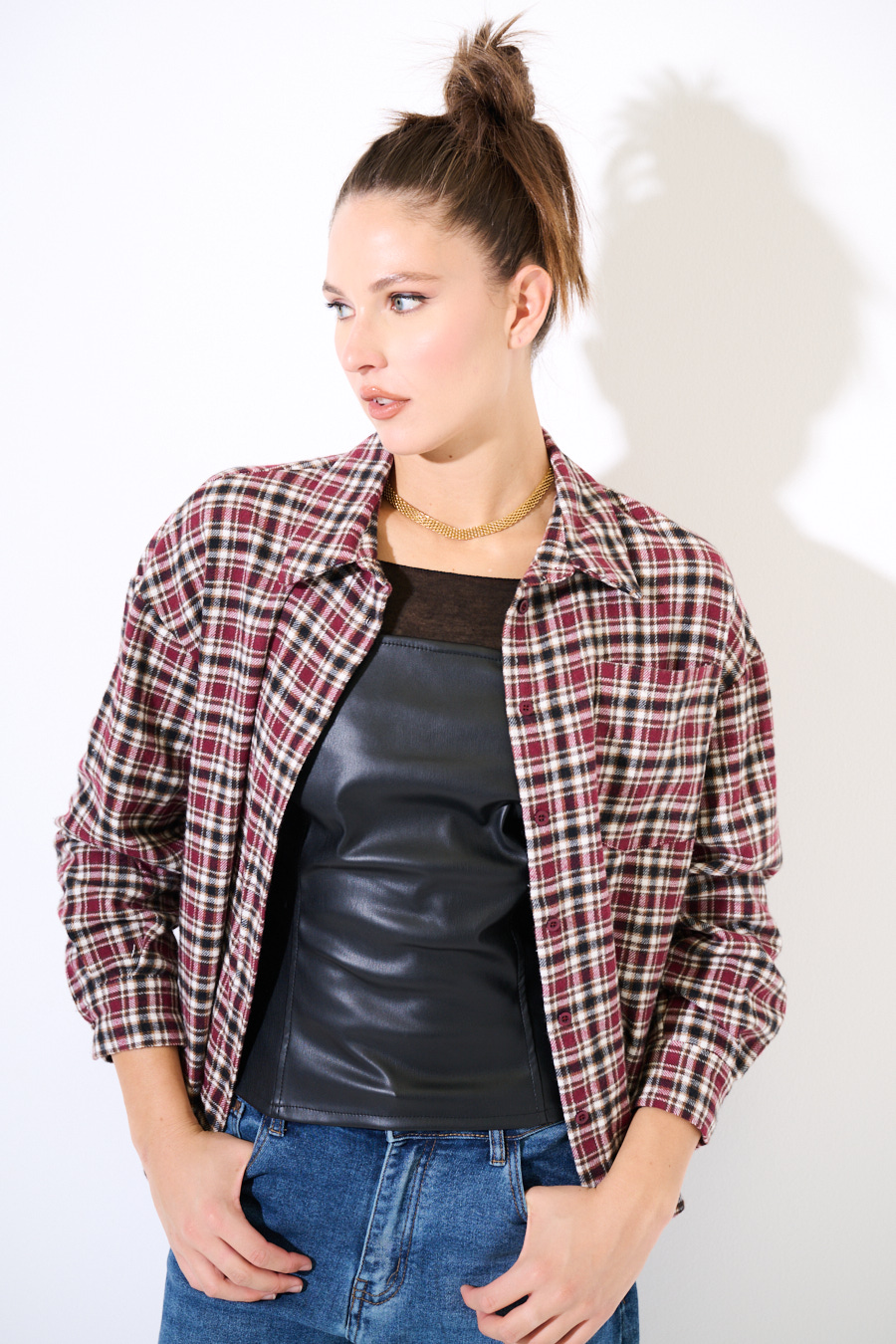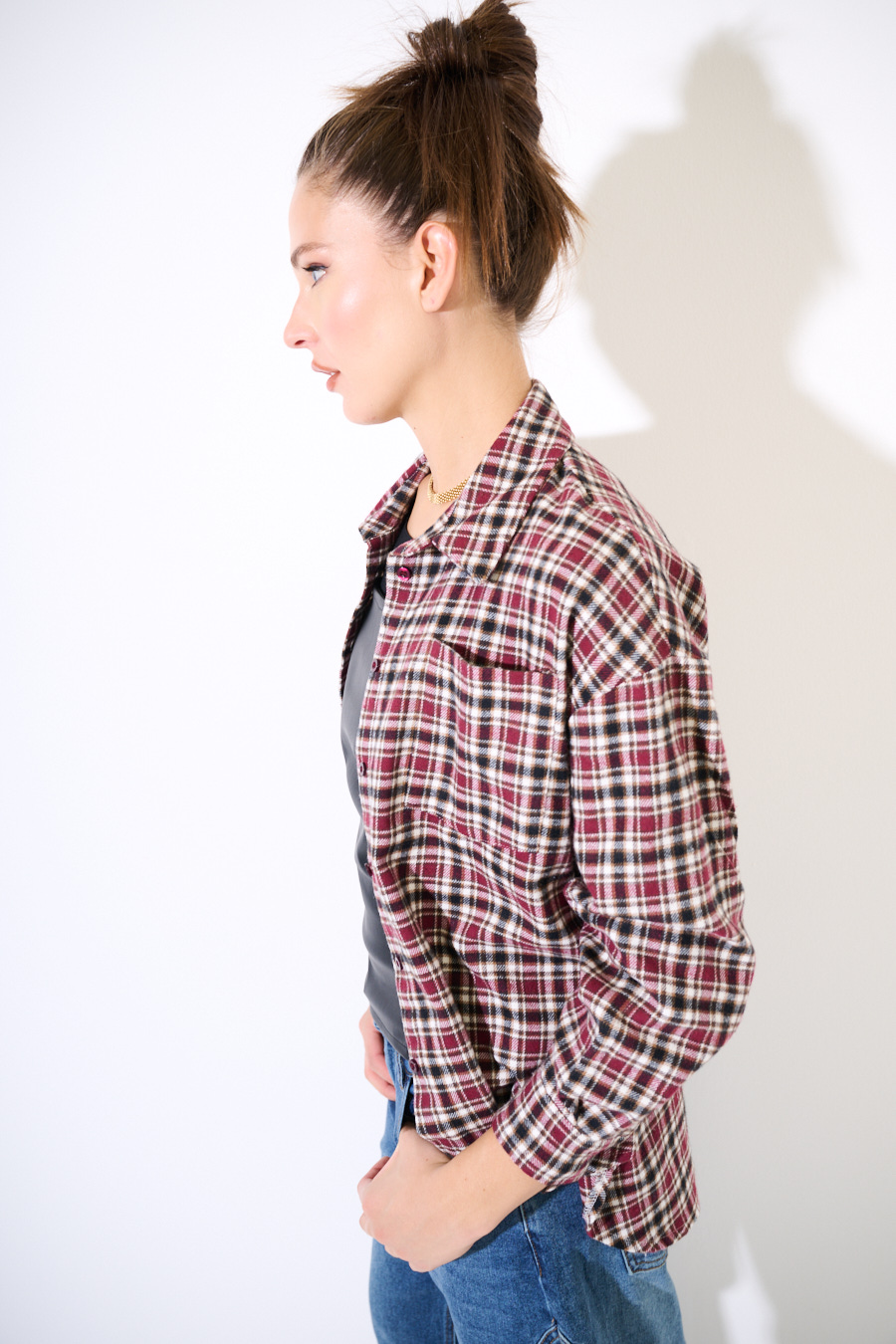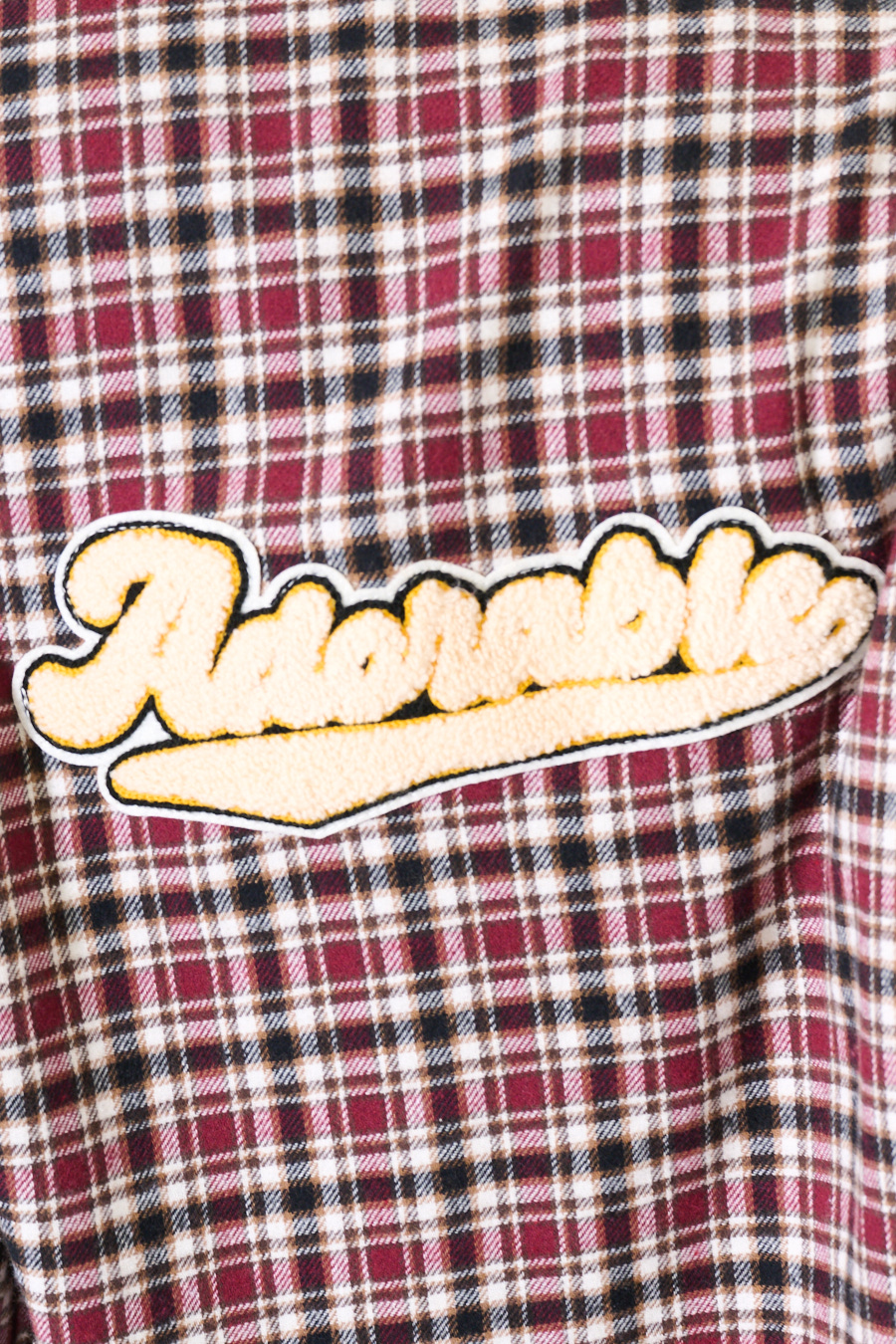 CAMICIA OVER QUADRI PATCH SCRITTA VINO
