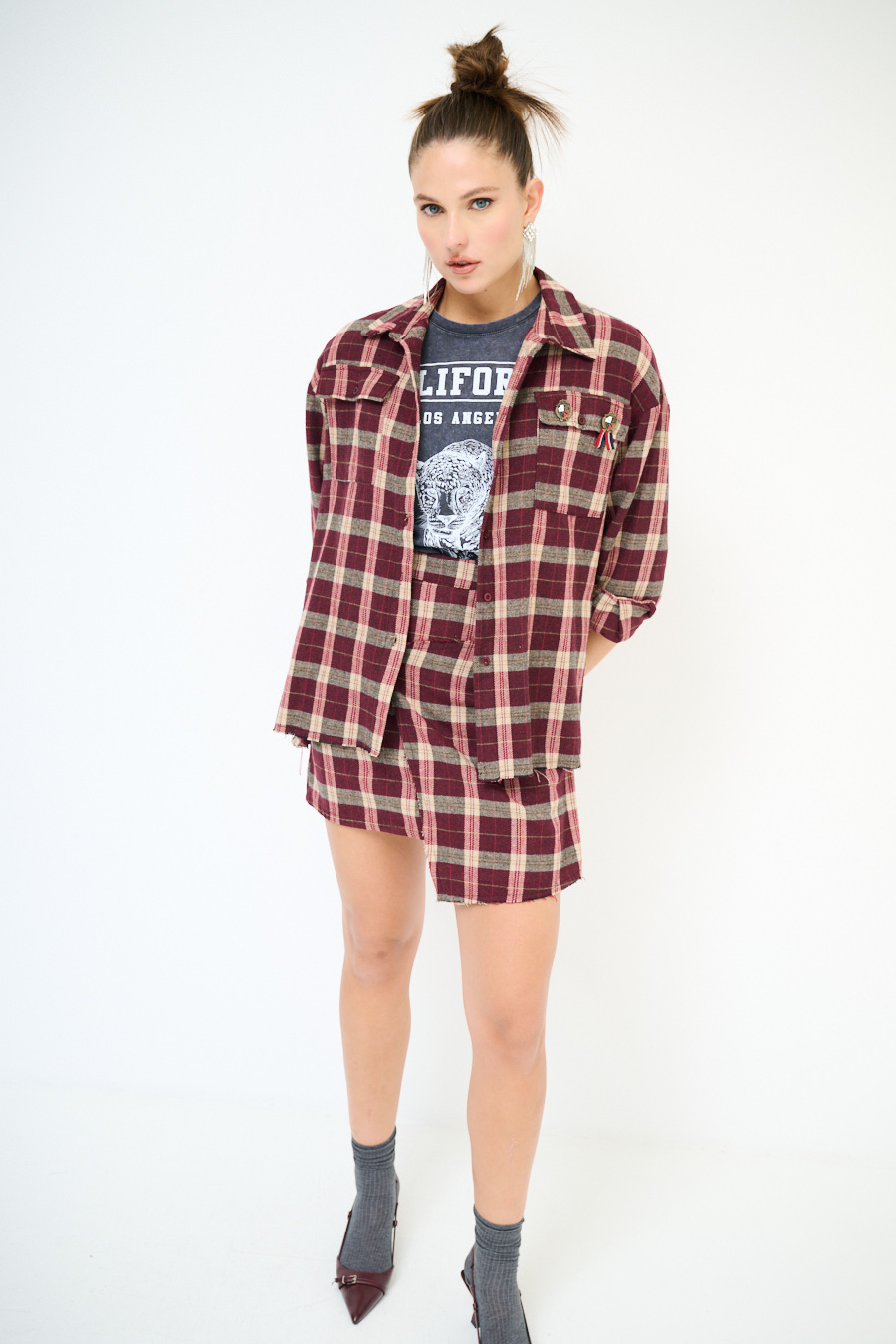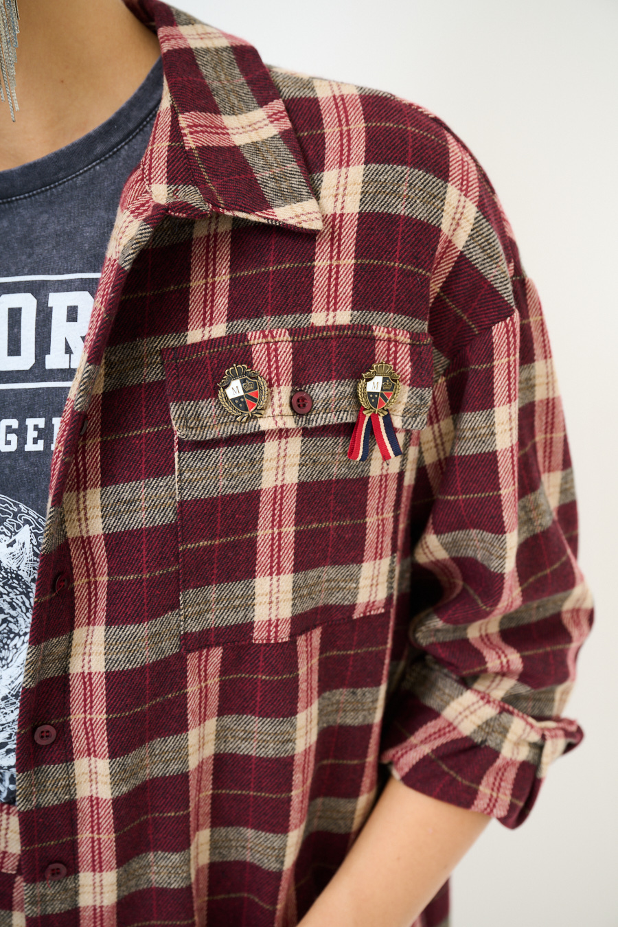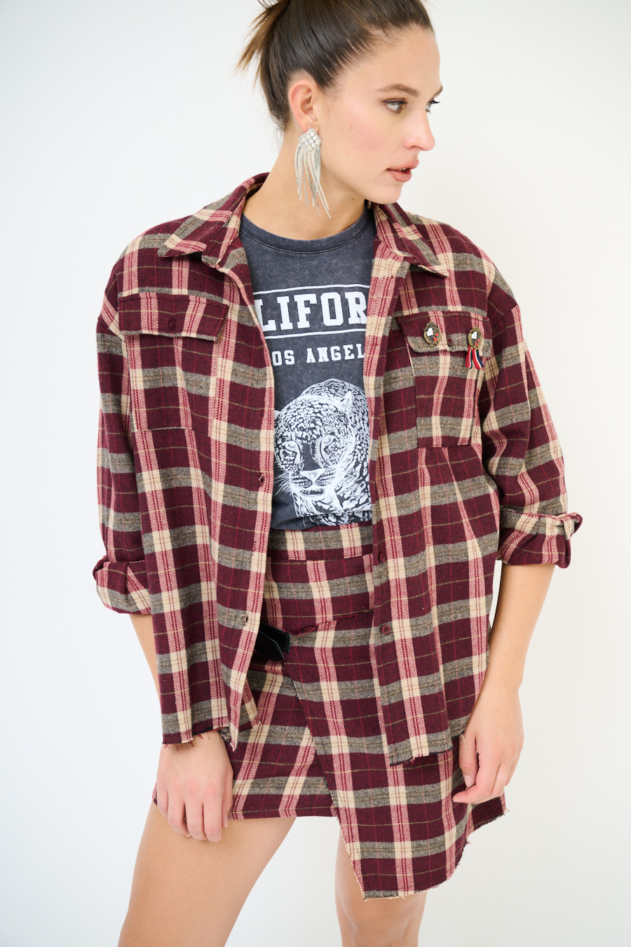 CAMICIA OVER TAGLIO VIVO CHECK BORDEAUX