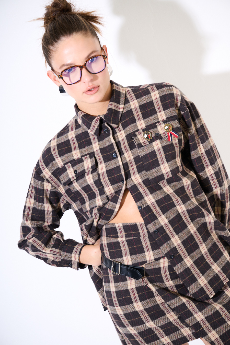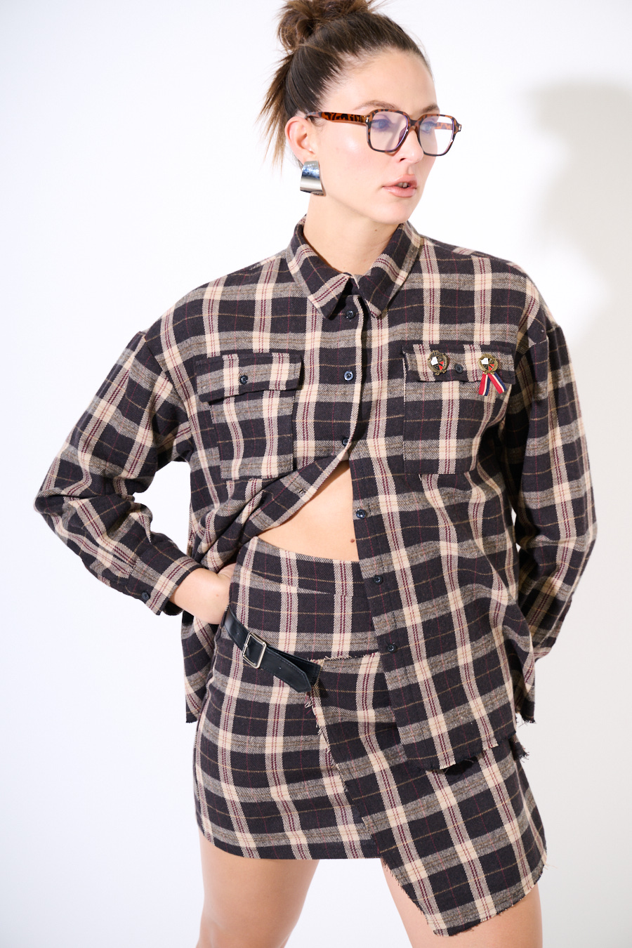 CAMICIA OVER TAGLIO VIVO CHECK MORO