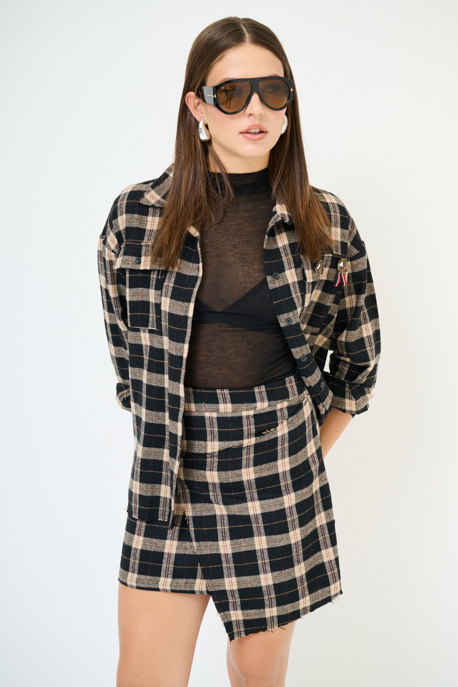 CAMICIA OVER TAGLIO VIVO CHECK NERO