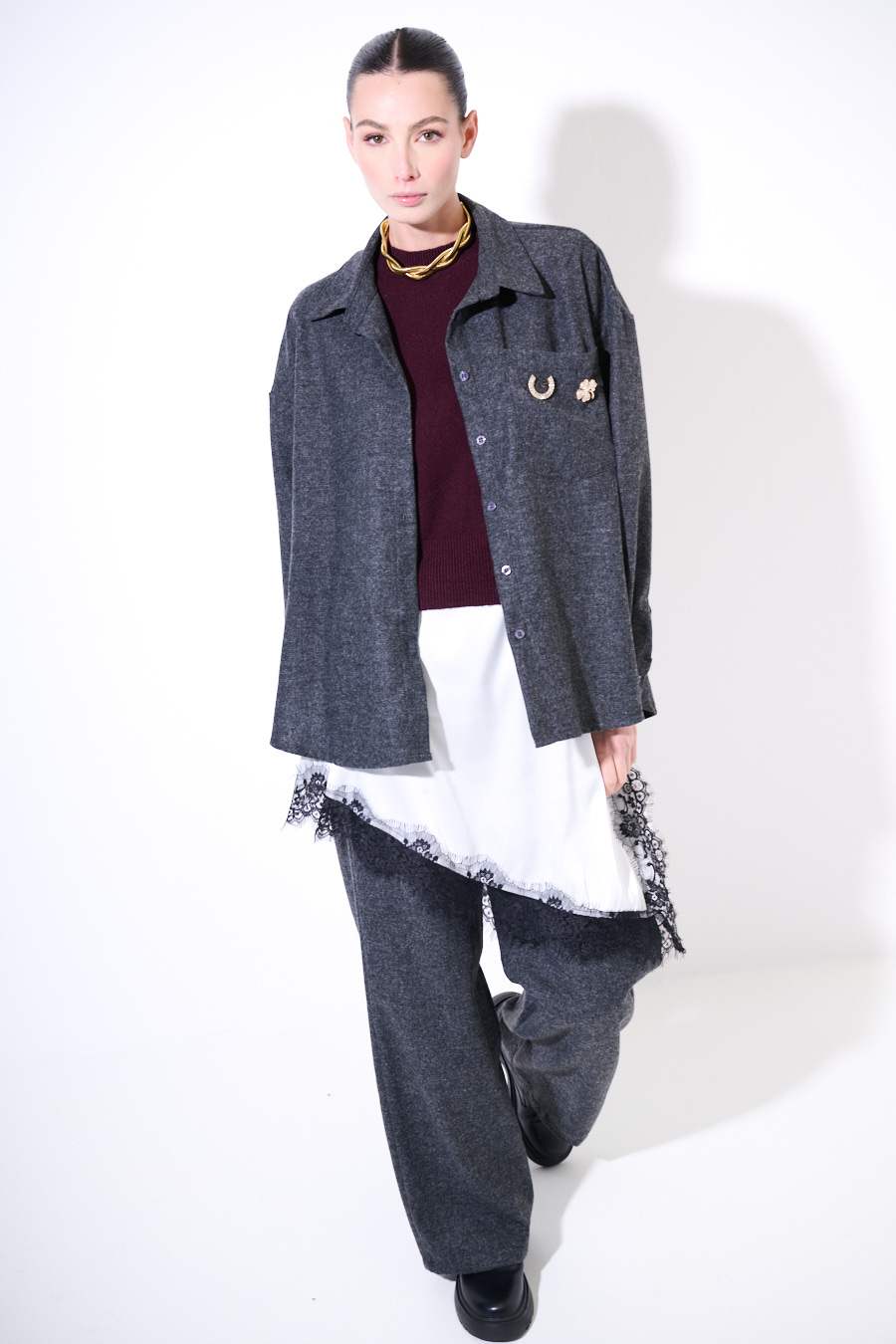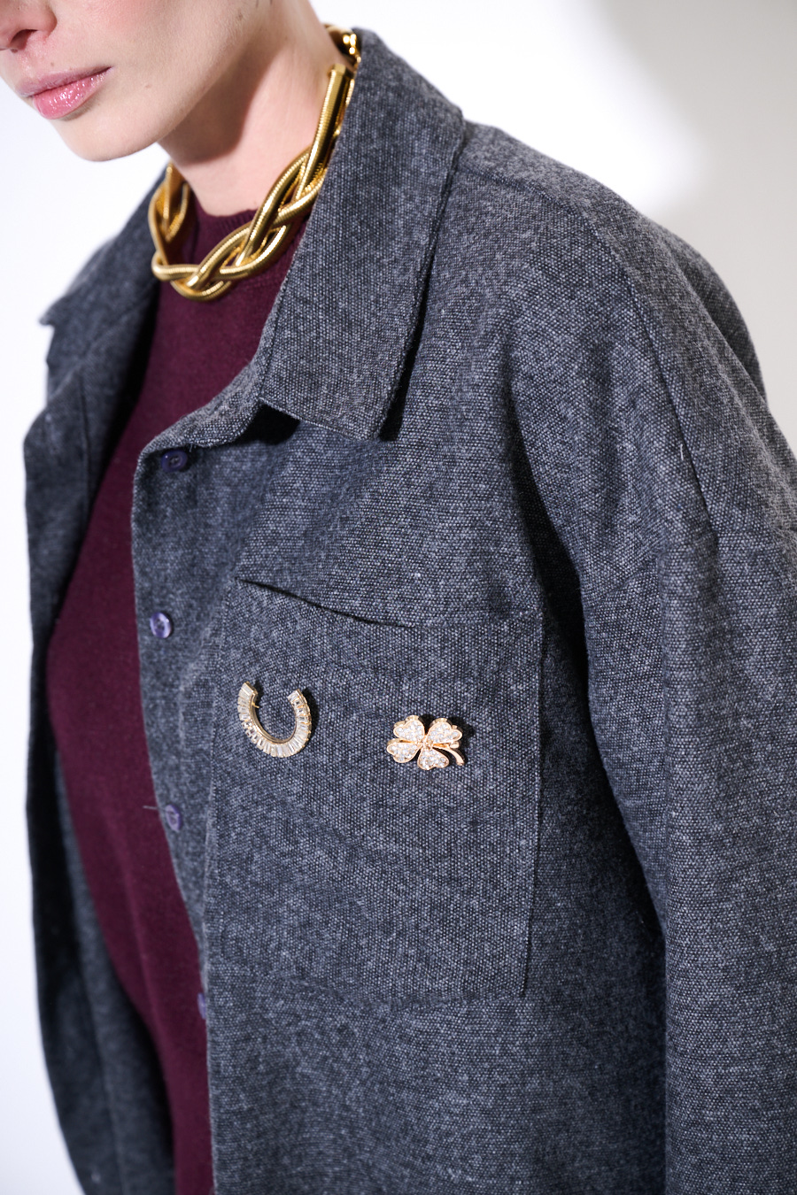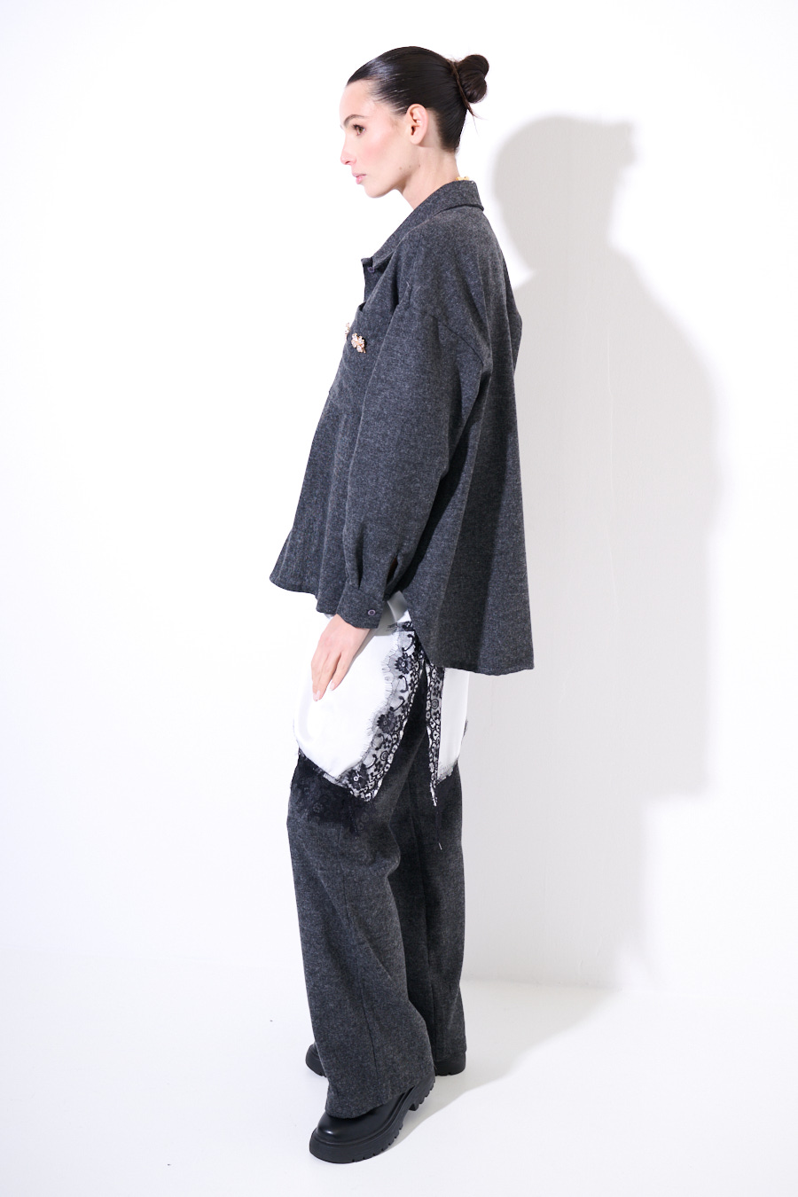 CAMICIA OVER TASCA CON SPILLA GRIGIO