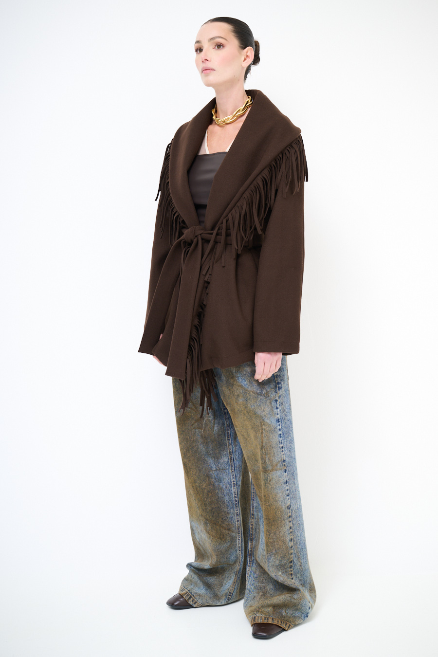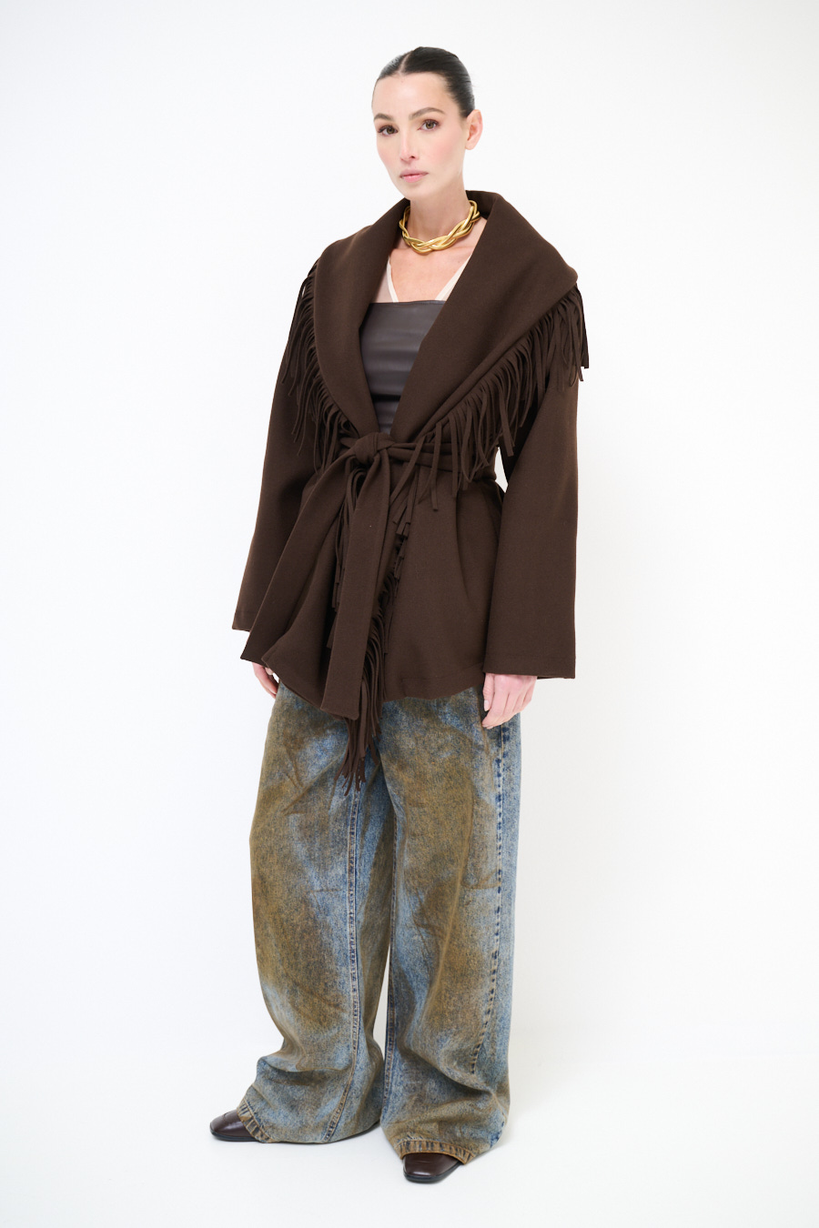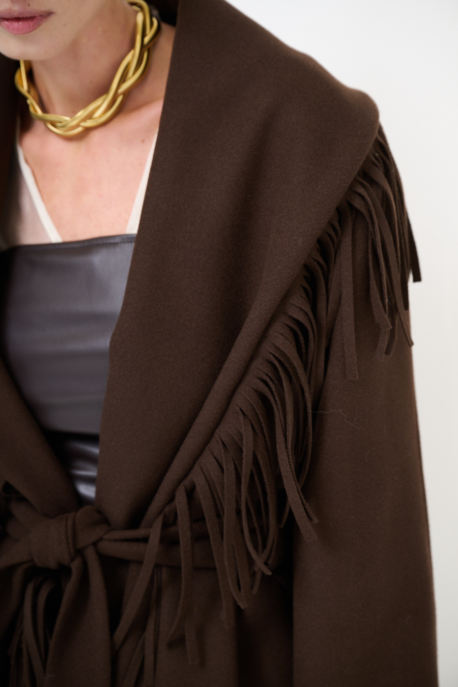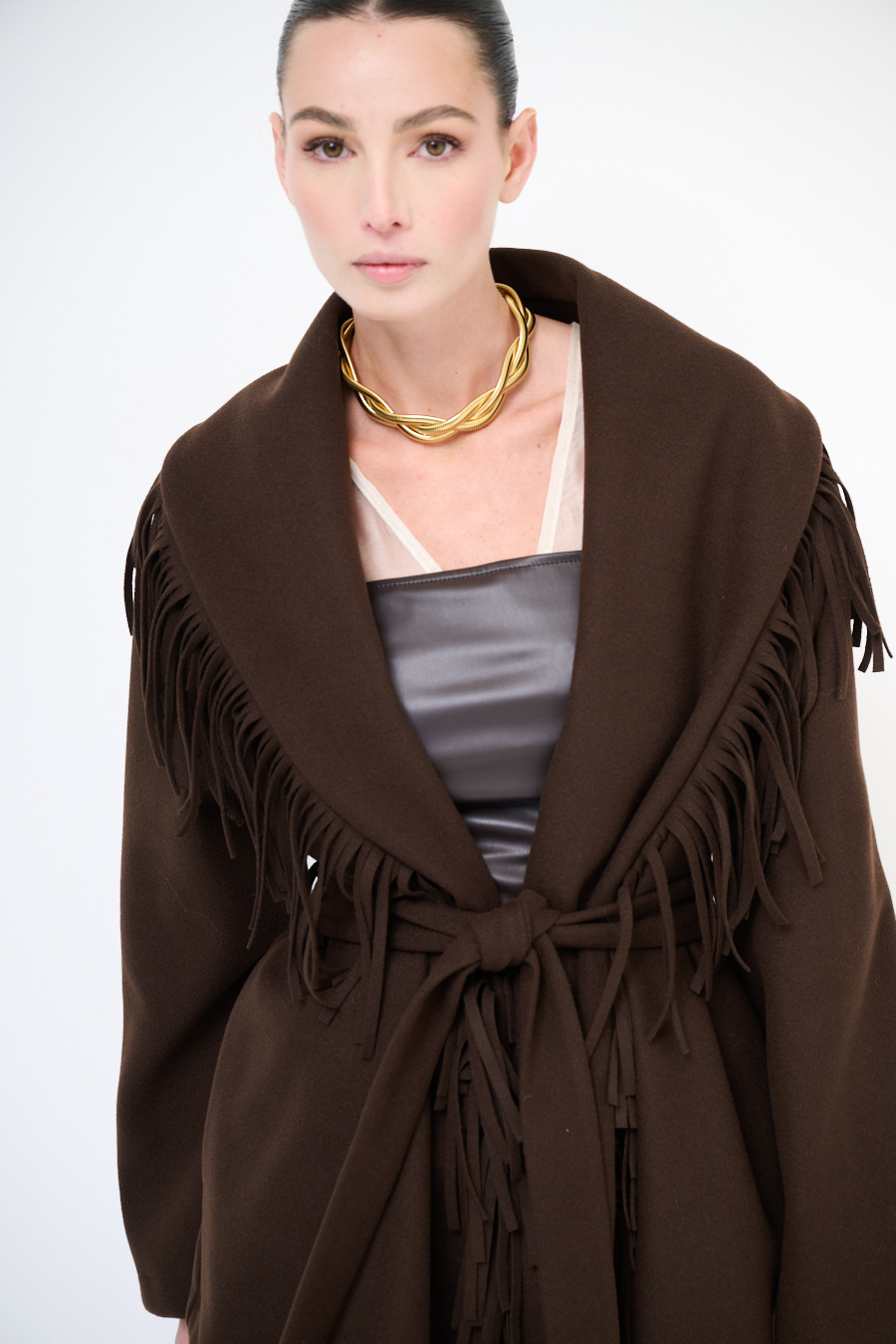 CAPPOTTO CORTO VESTAGLIA CON FRANGE MORO