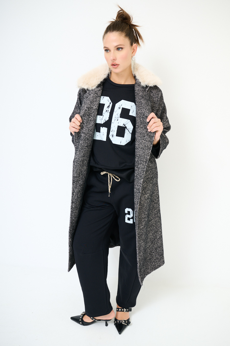 CAPPOTTO LUNGO ACCAPPATOIO CON COLLO PELLICCIA NERO