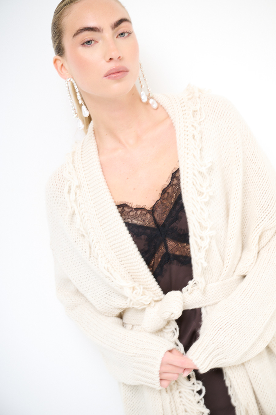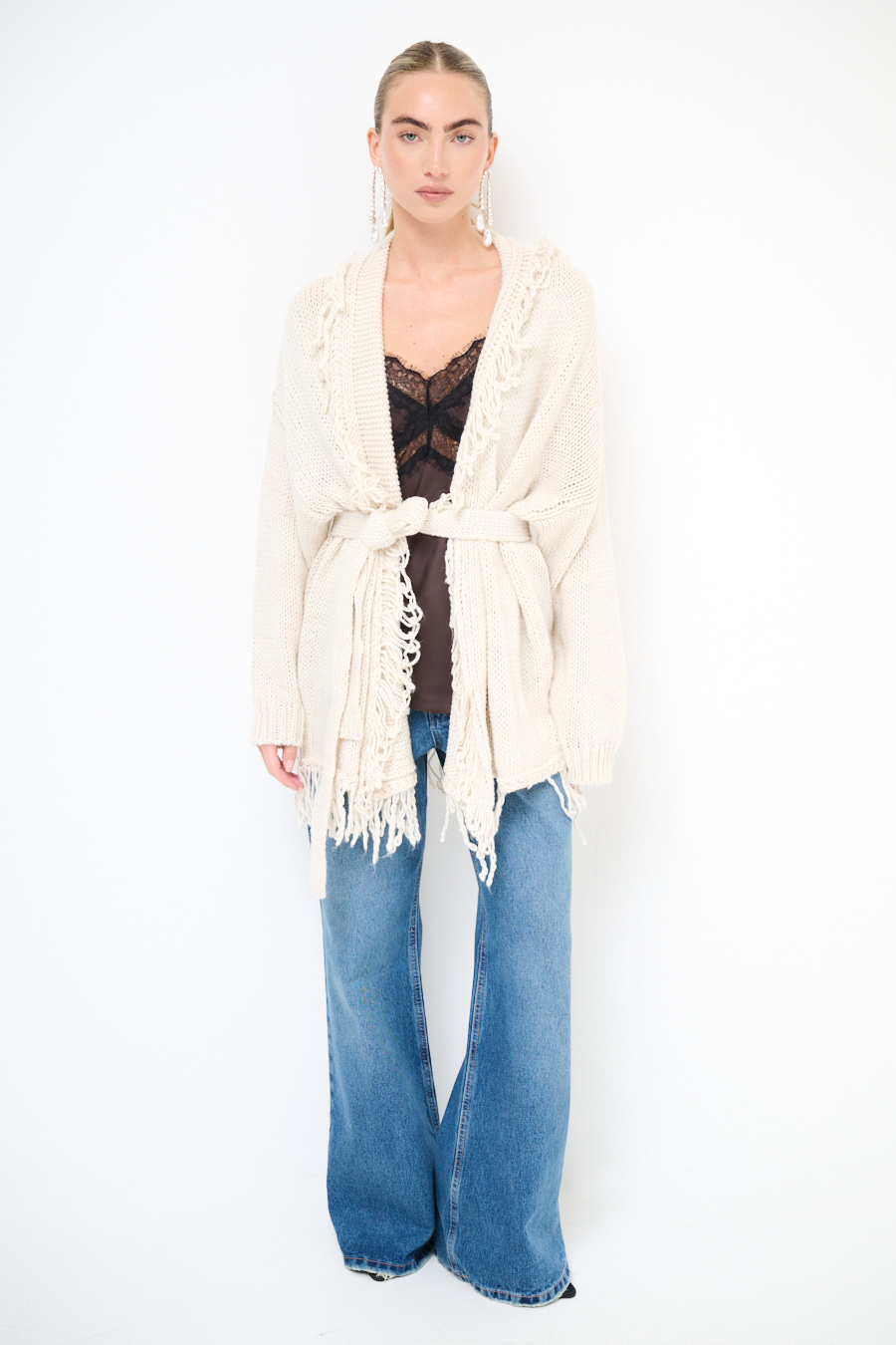 CARDIGAN APERTO FRANGE + CINTURA ECRU