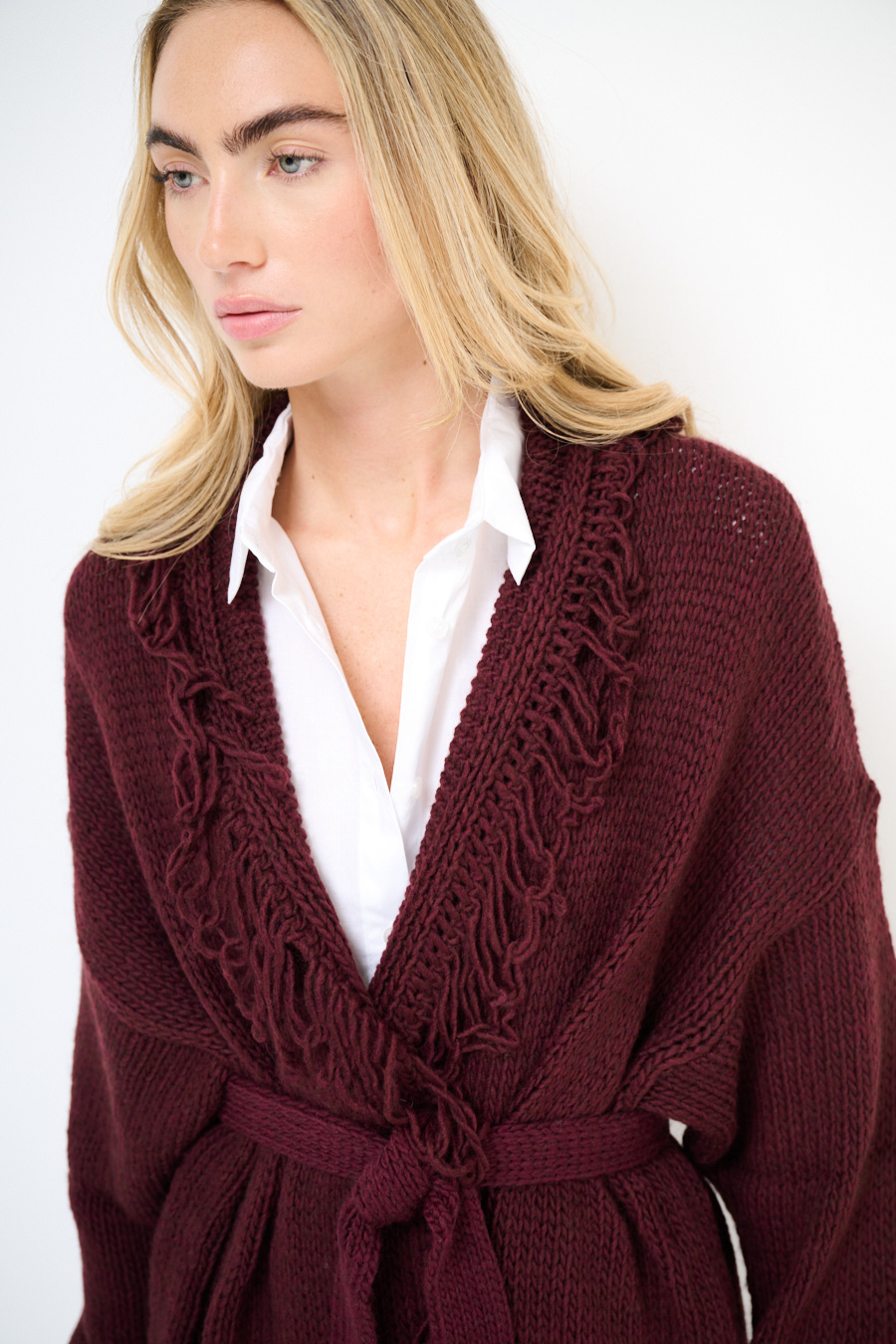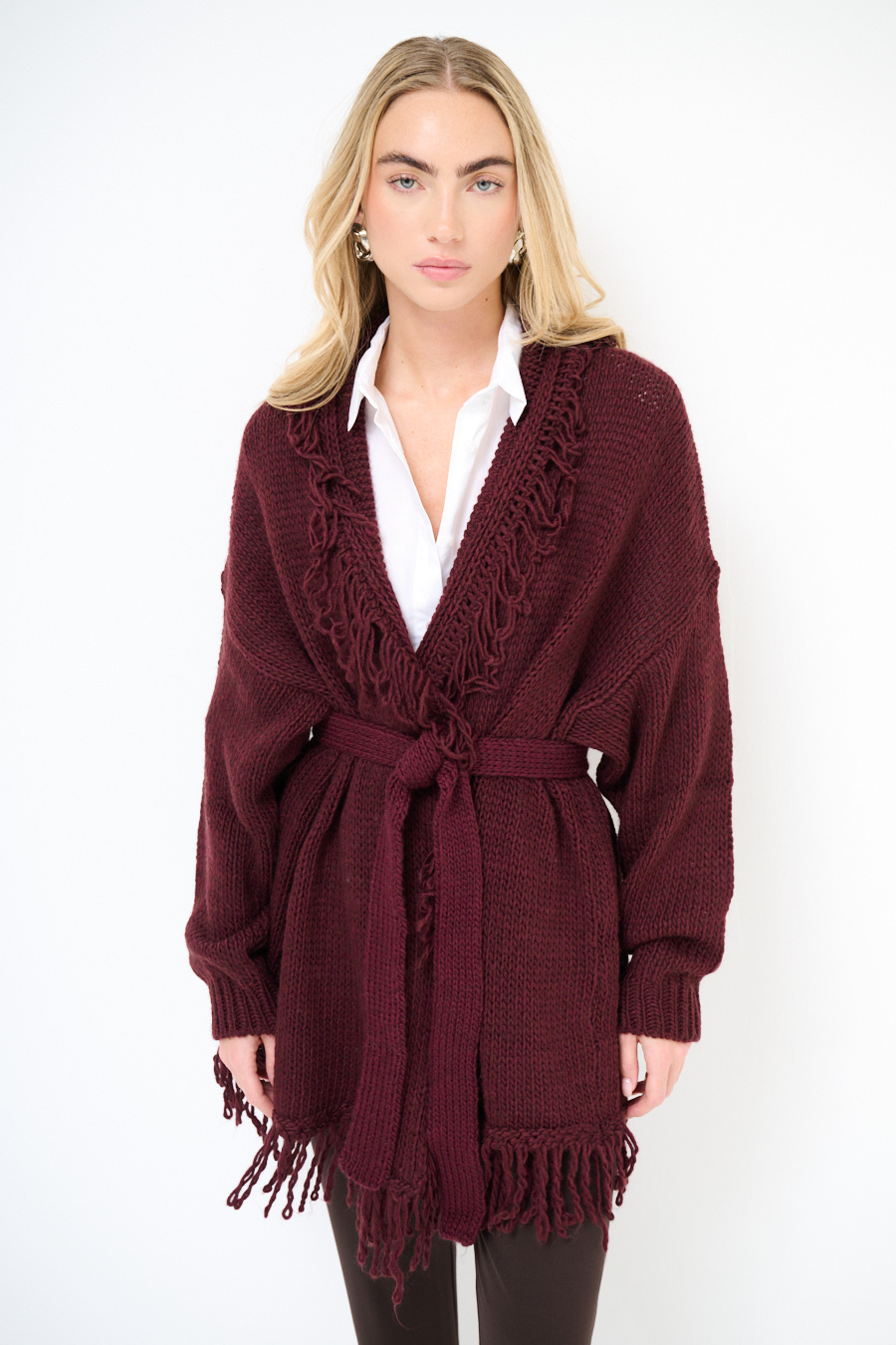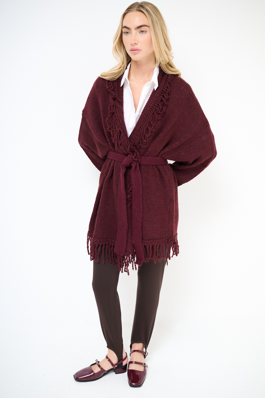 CARDIGAN APERTO FRANGE + CINTURA VINO