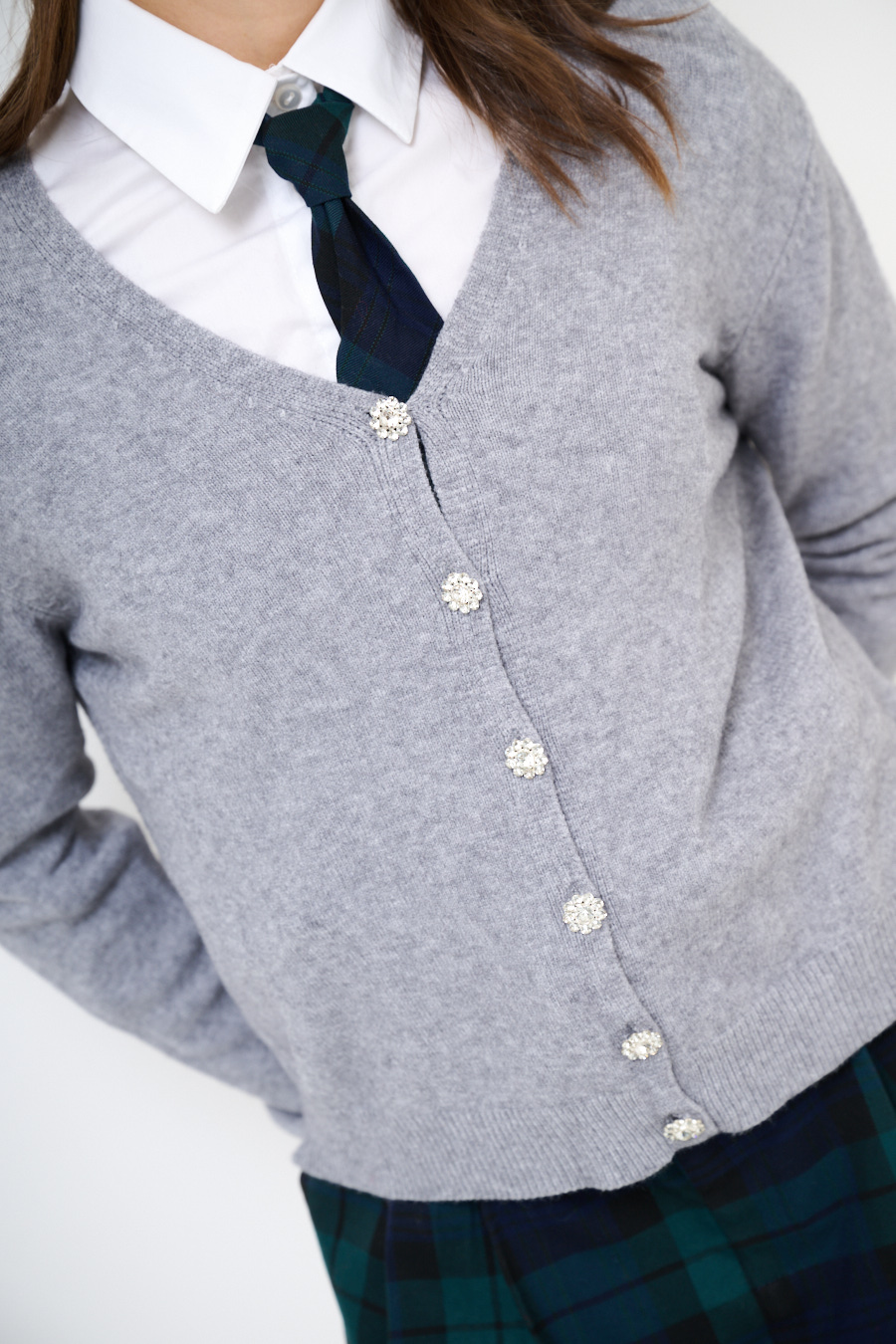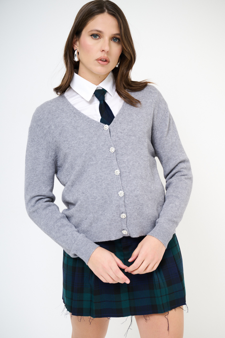 CARDIGAN BASIC BOTTONI GIOIELLO SCOLLO V GRIGIO