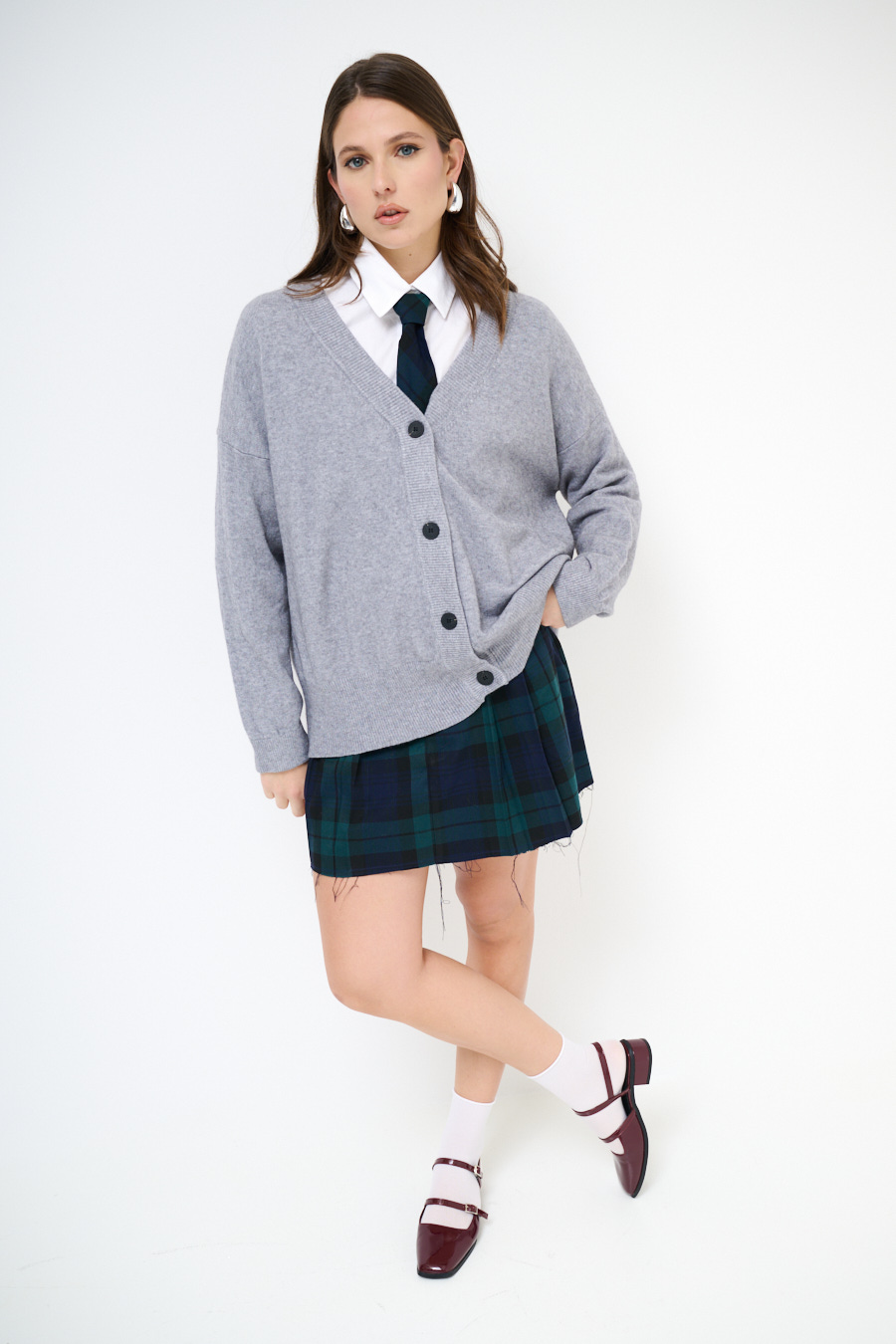 CARDIGAN BOTTONI GIOIELLI SCOLLO V GRIGIO