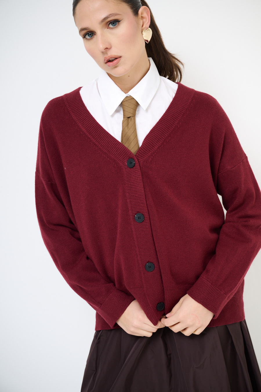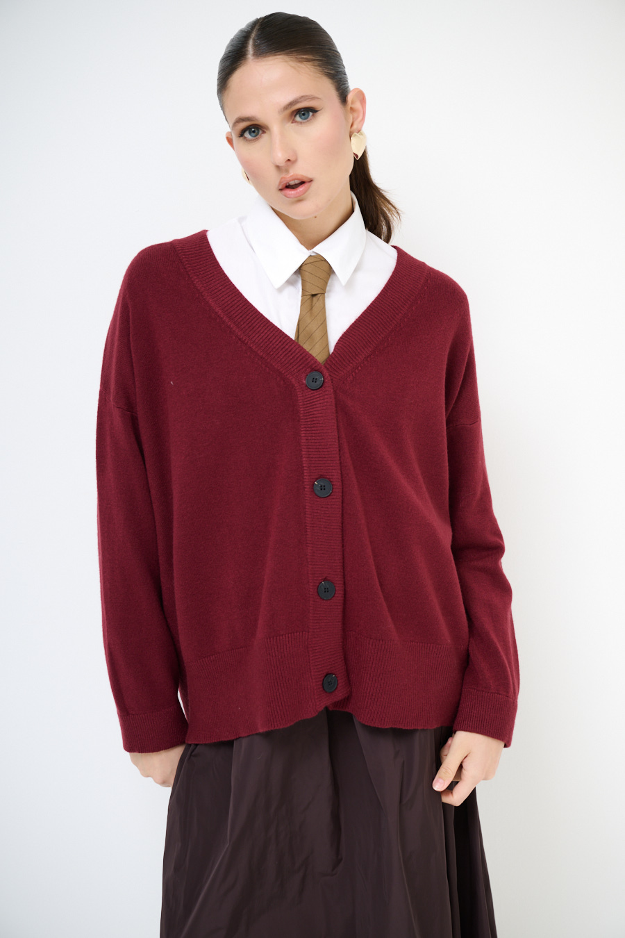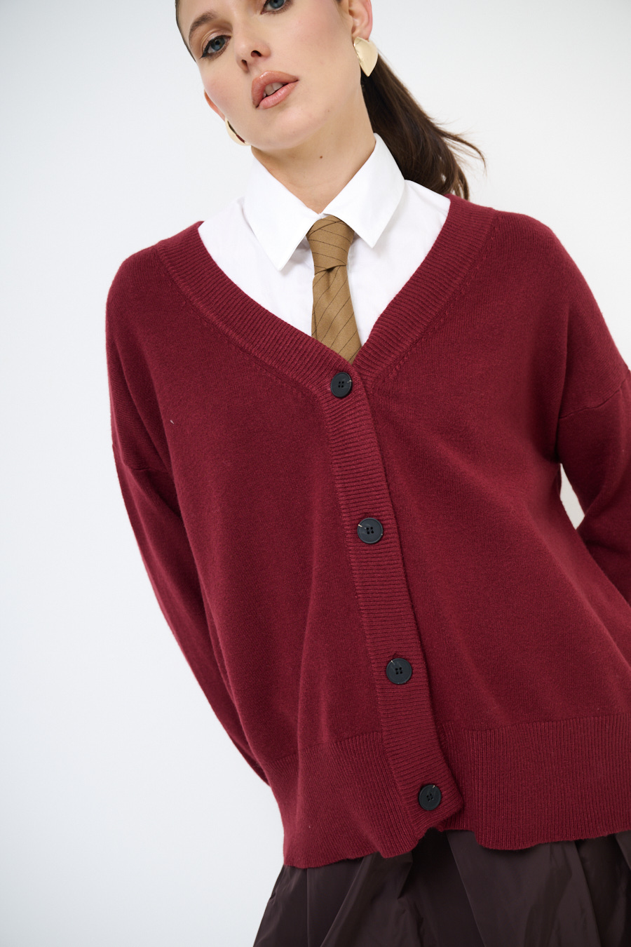 CARDIGAN BOTTONI GIOIELLI SCOLLO V VINO