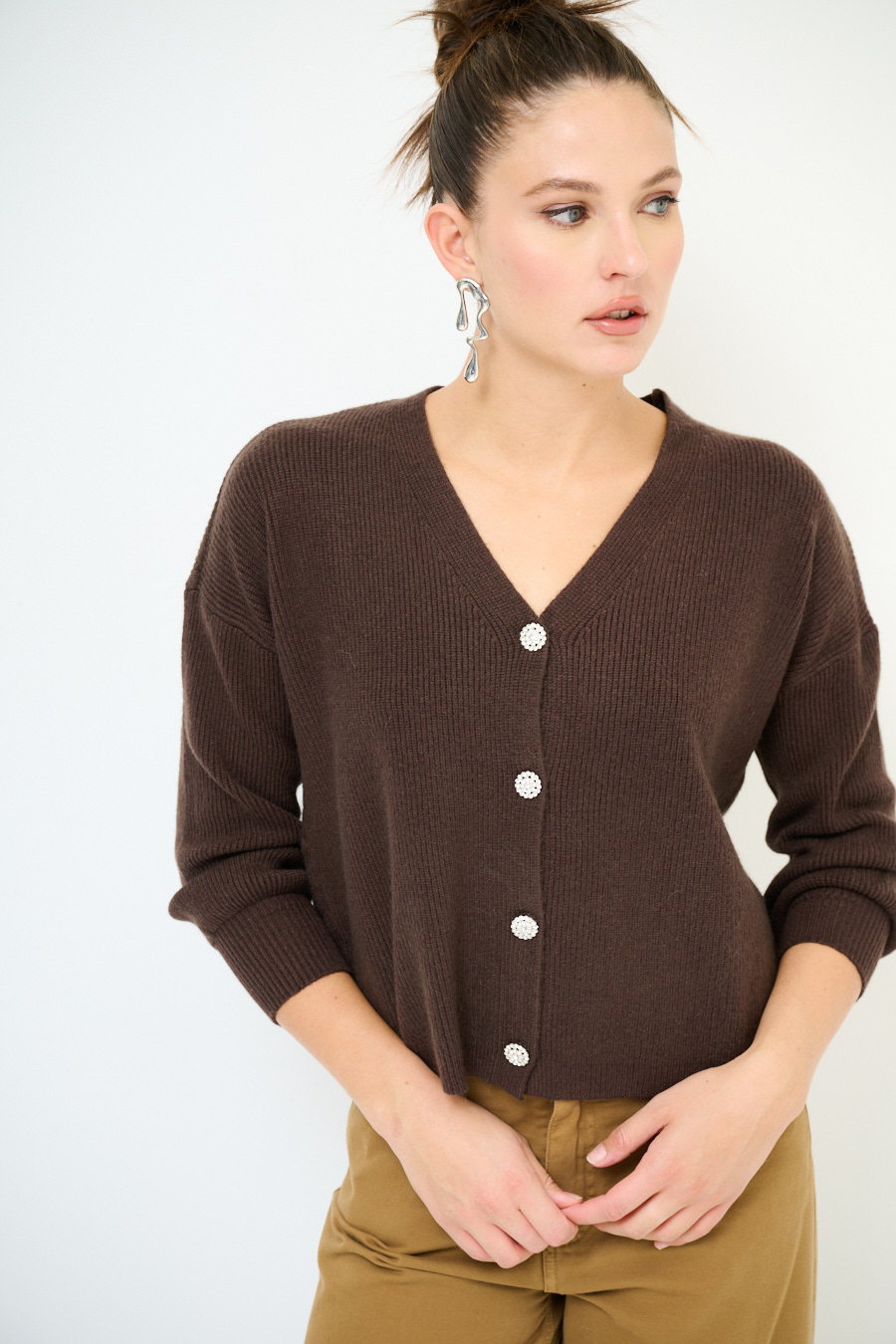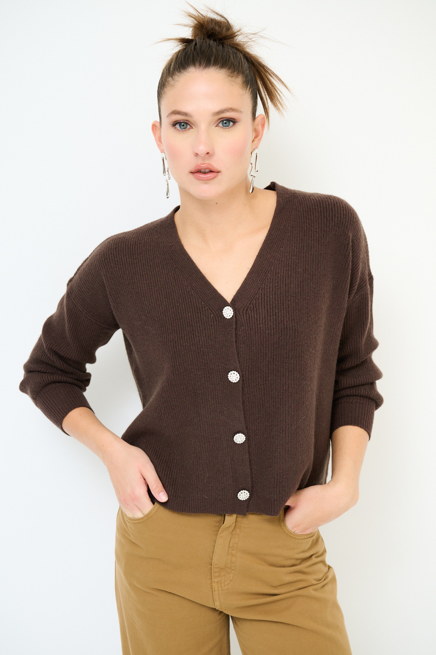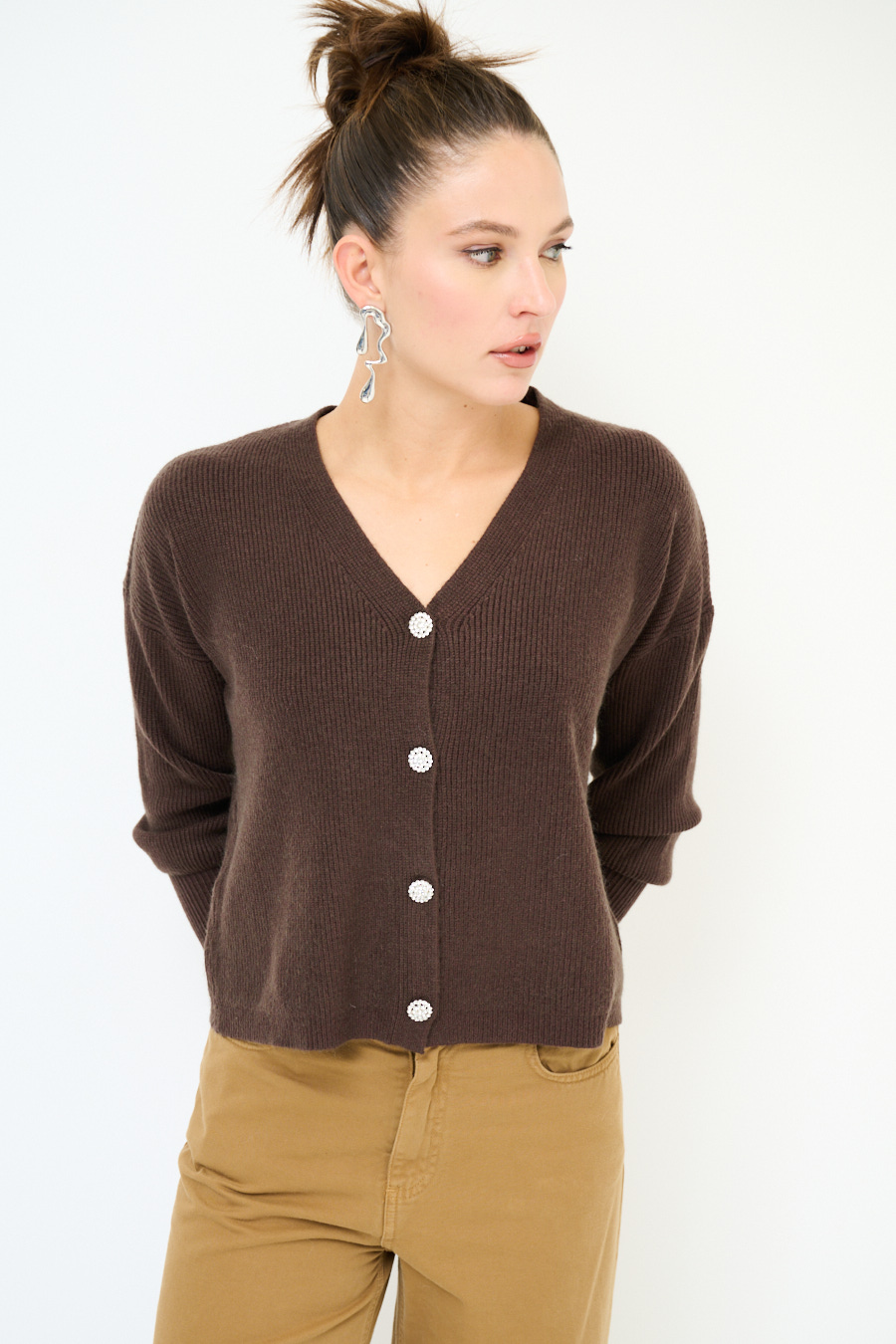 CARDIGAN CON BOTTONE GIOIELLO MORO
