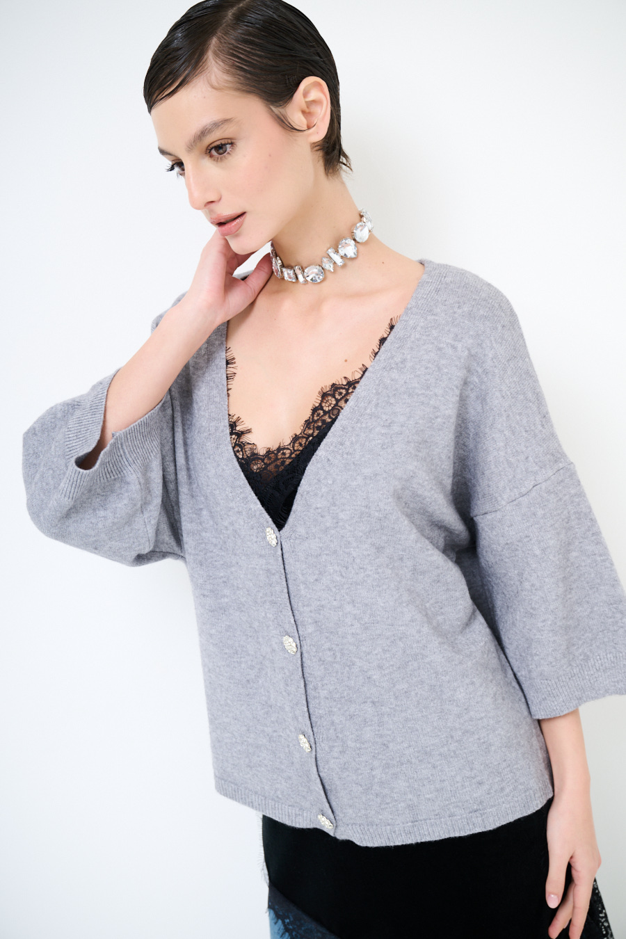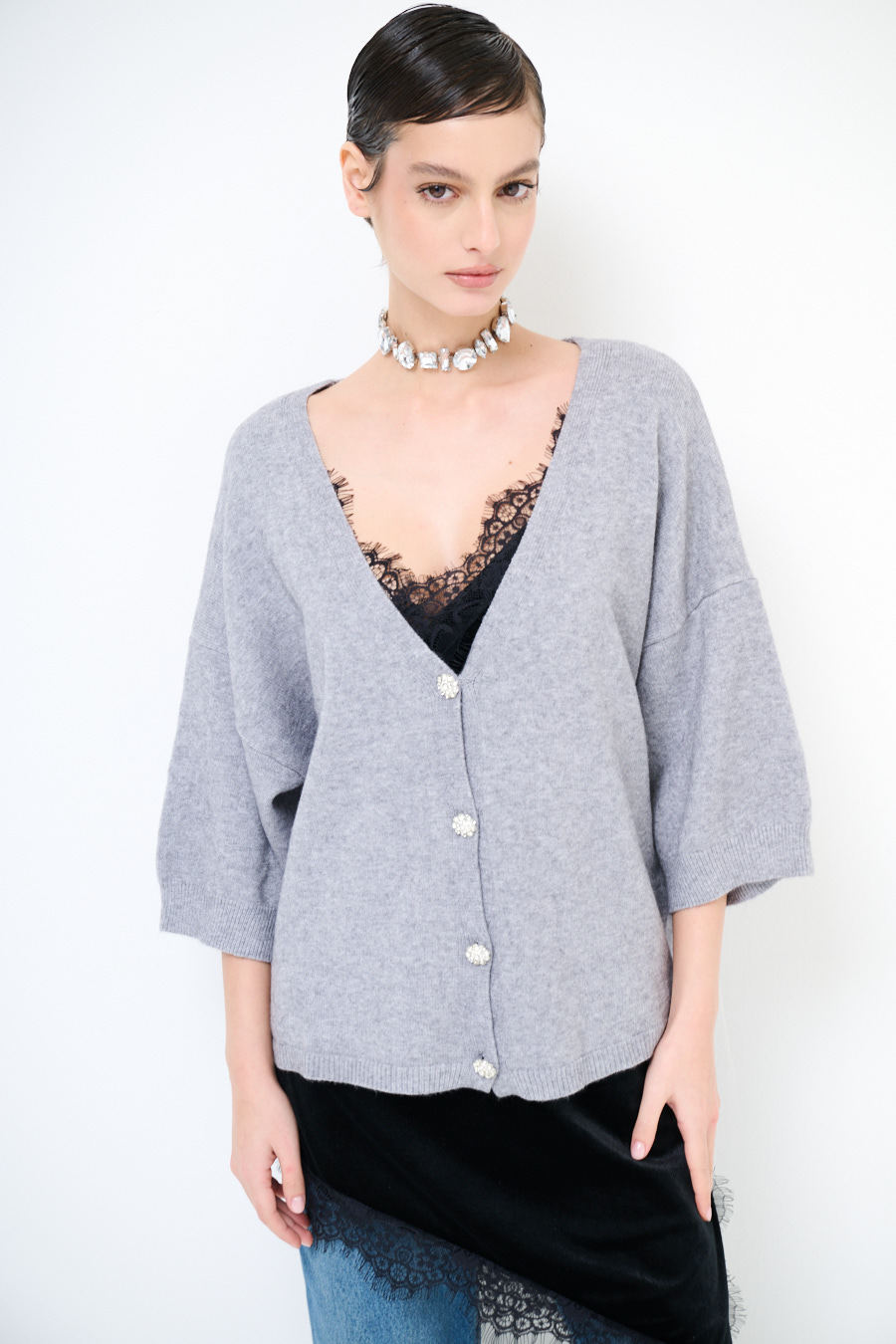 CARDIGAN MANICA CORTA BOTTONI GIOIELLO GRIGIO