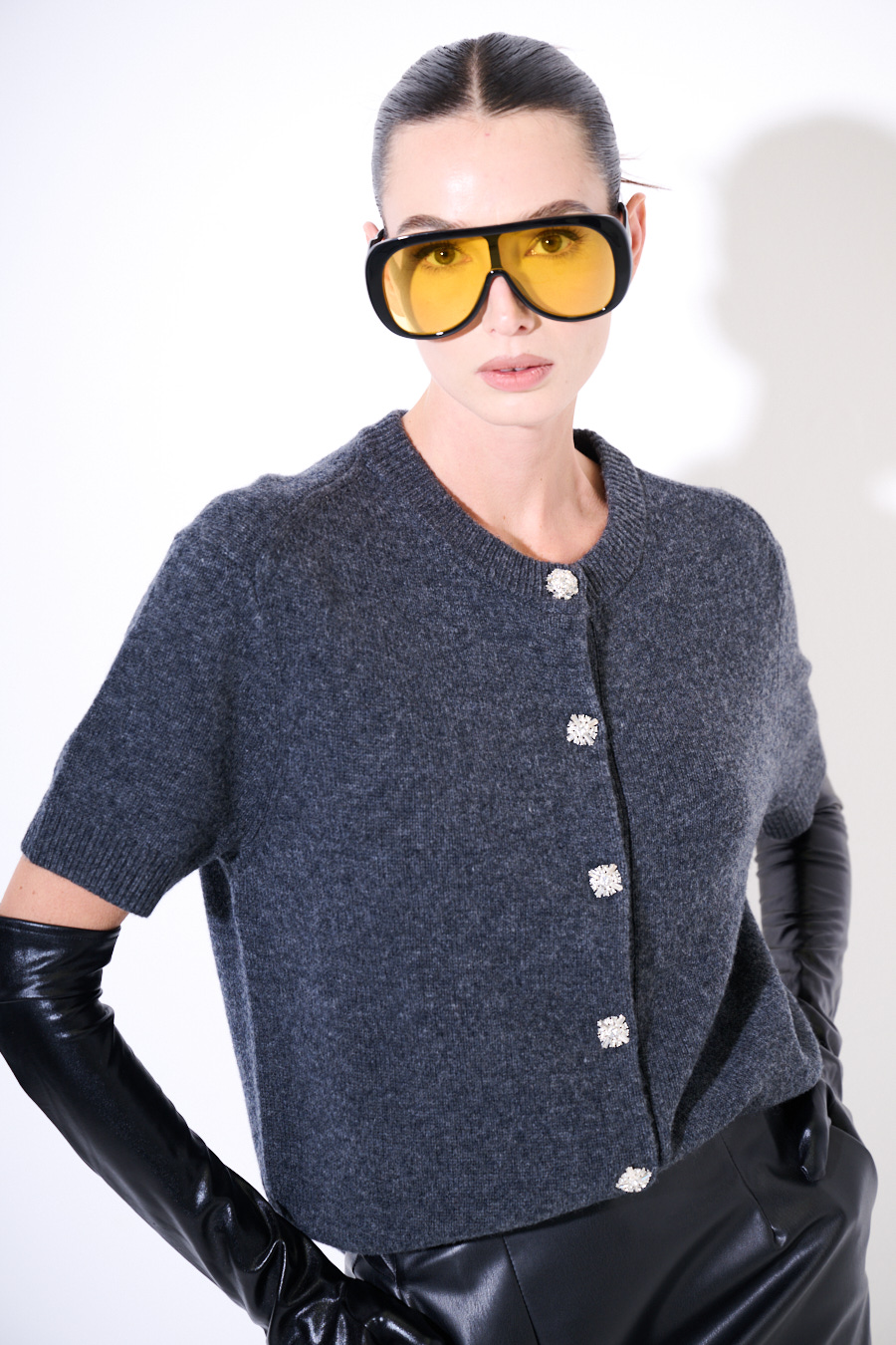 CARDIGAN MANICA CORTA BOTTONI GIOIELLO GRIGIO ANTRACITE