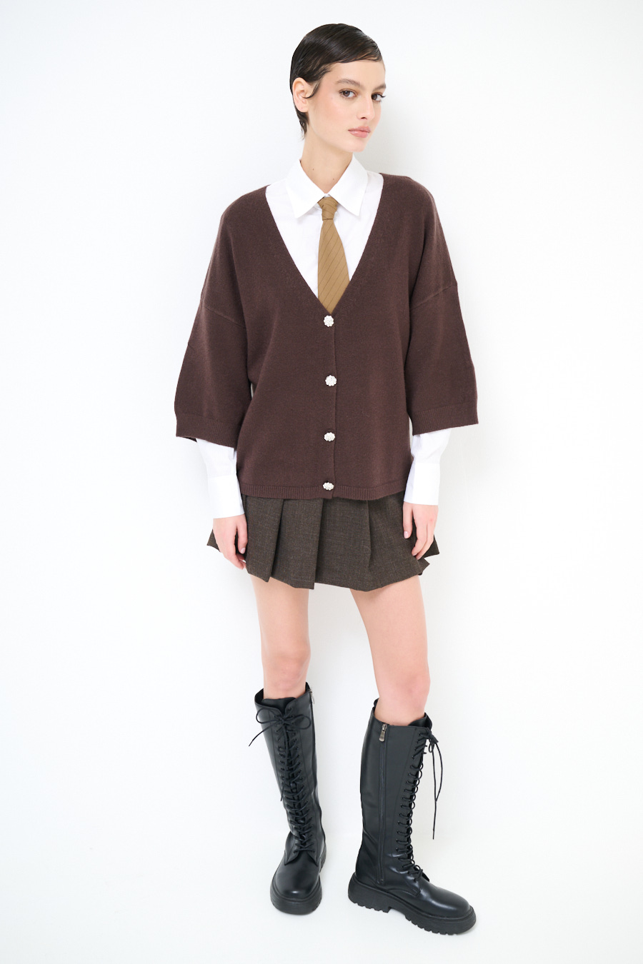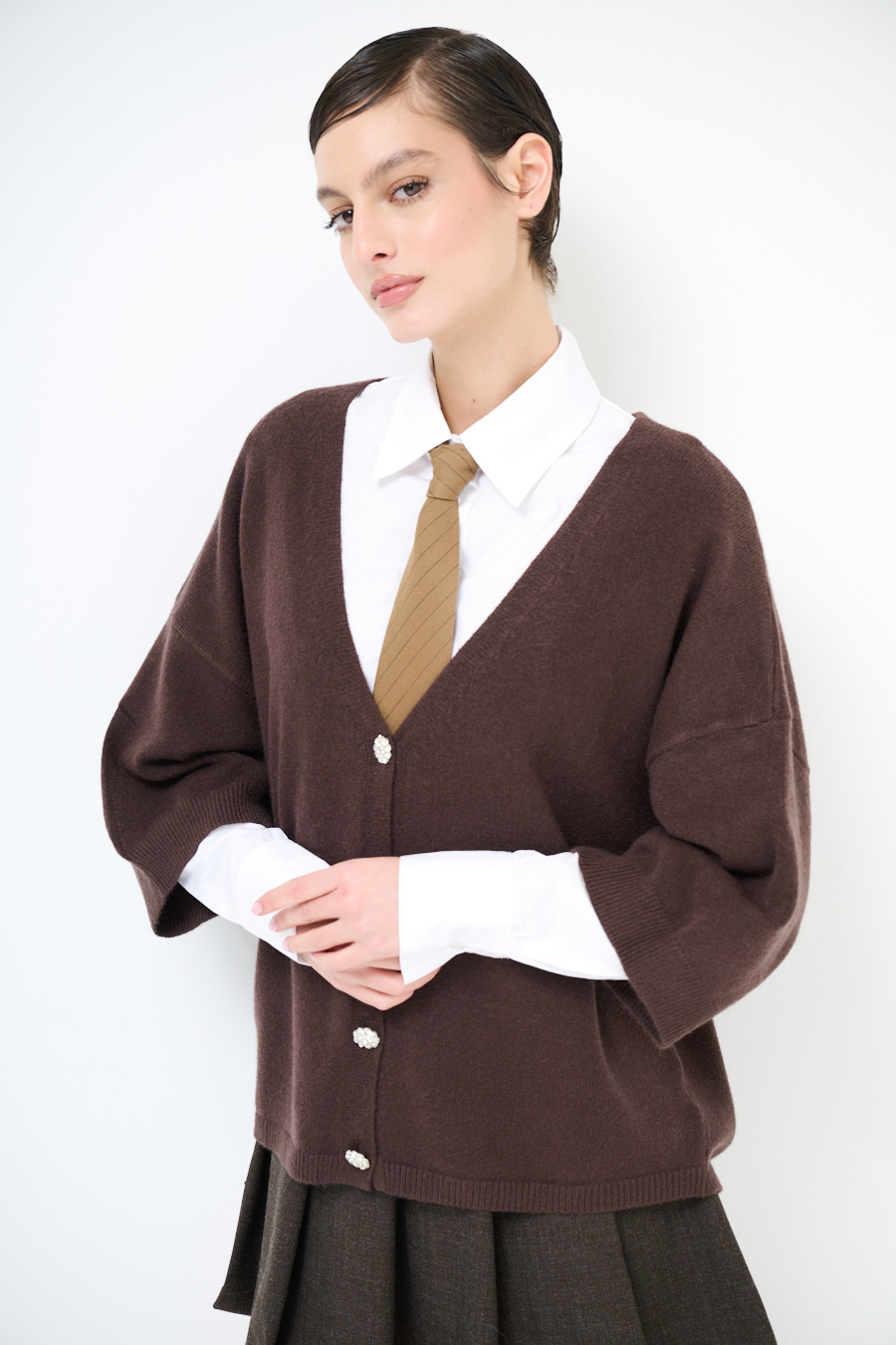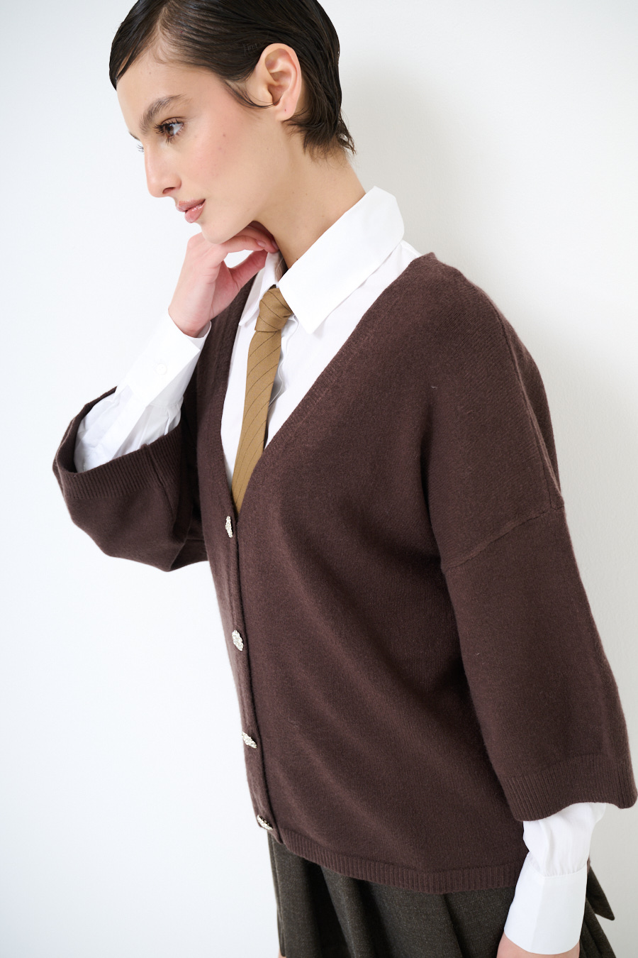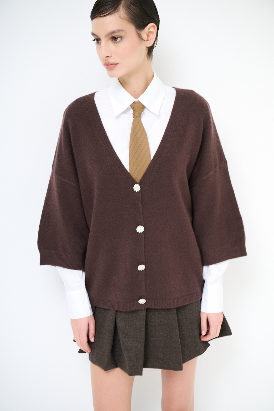 CARDIGAN MANICA CORTA BOTTONI GIOIELLO MORO