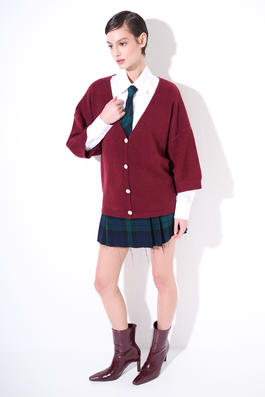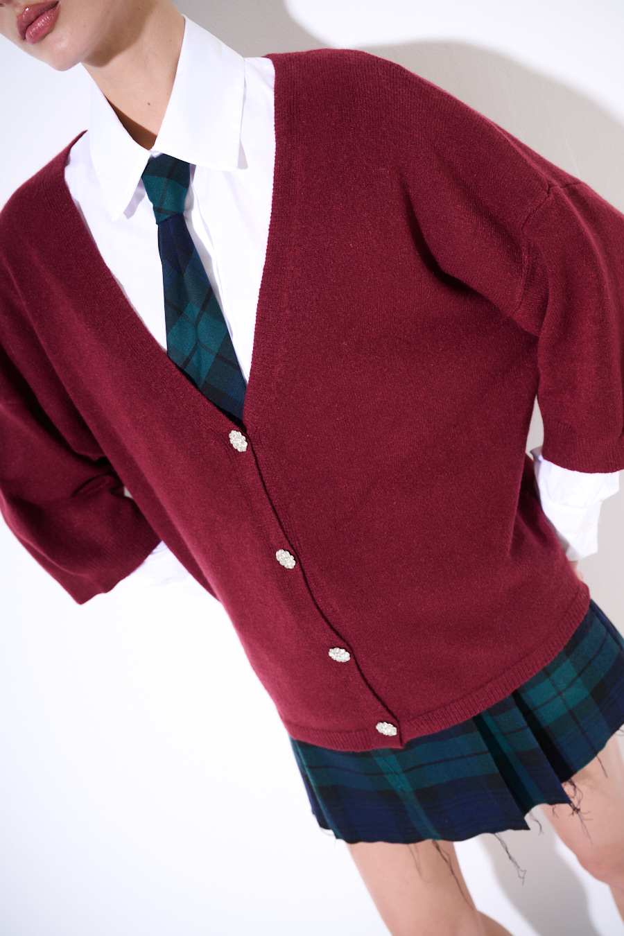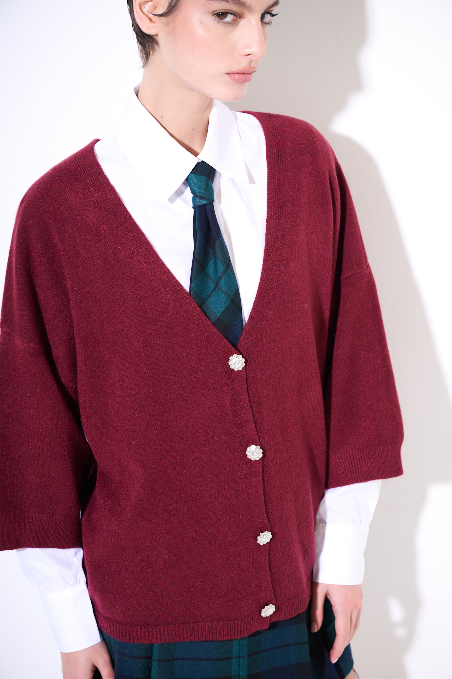 CARDIGAN MANICA CORTA BOTTONI GIOIELLO VINO