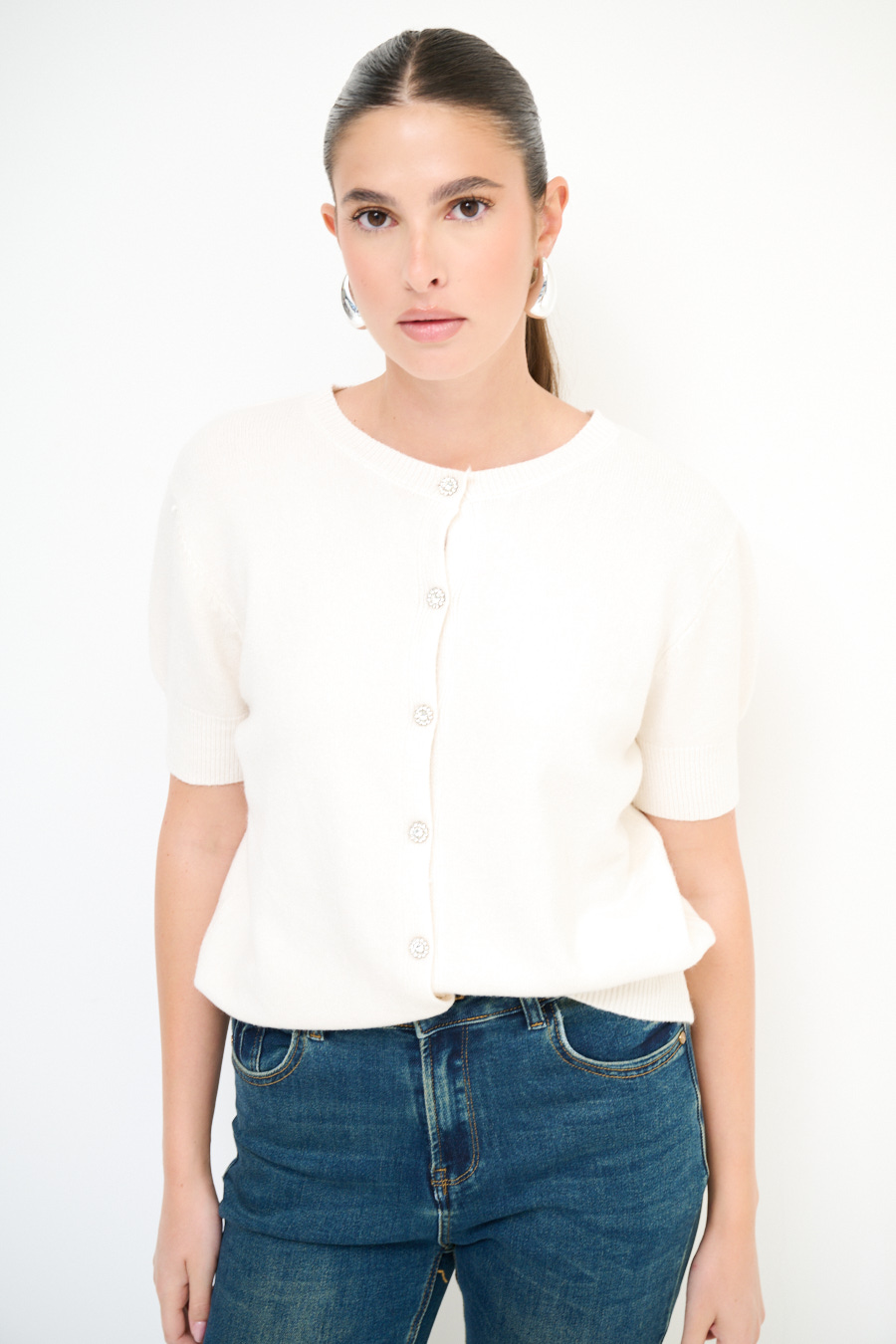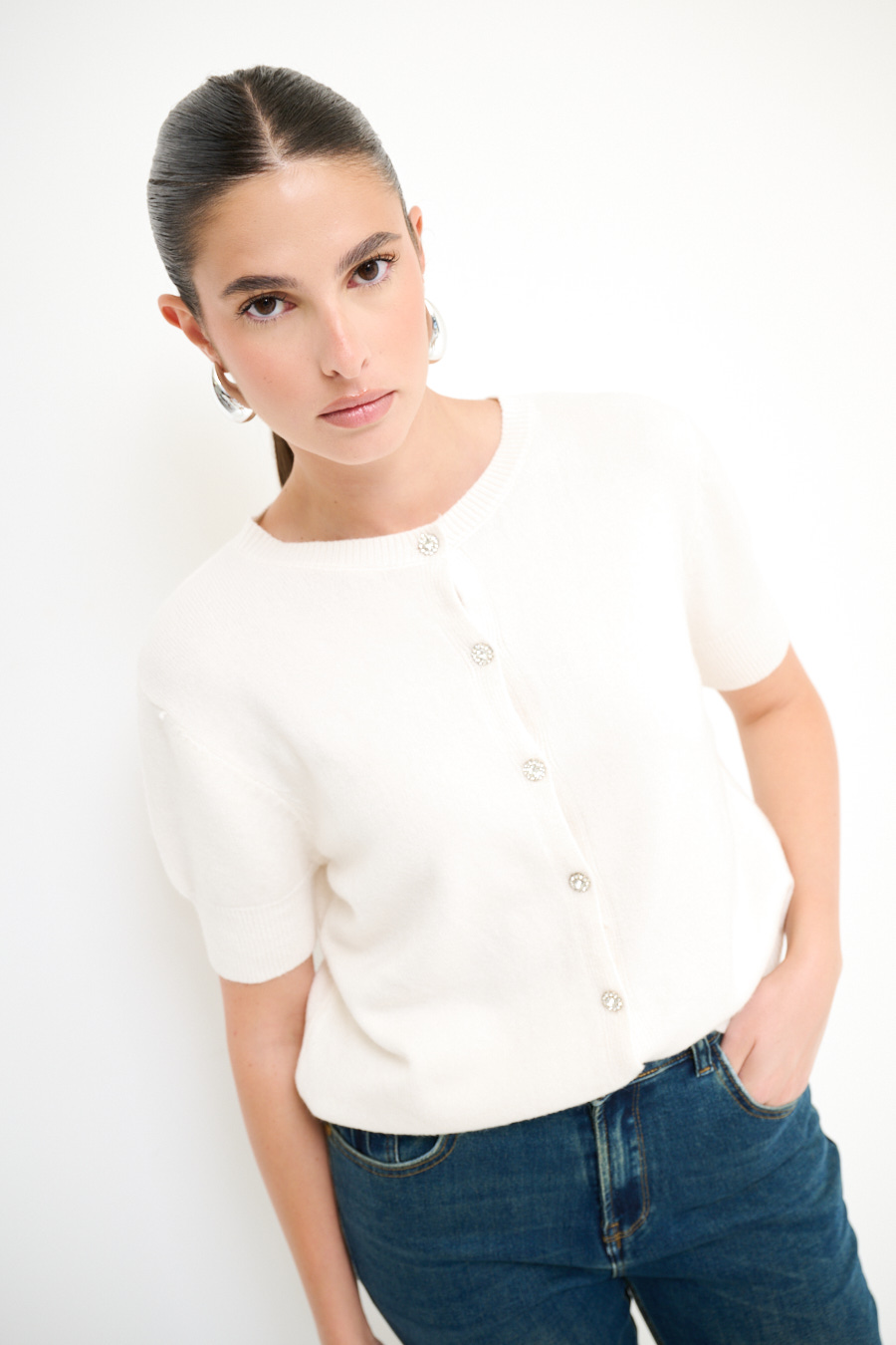 Cardigan a mezza manica con bottoni gioiello e girocollo.