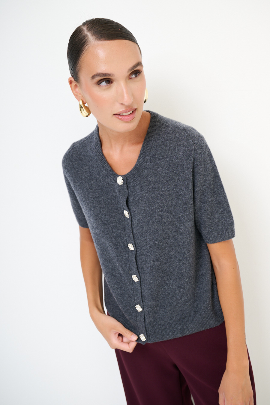 Cardigan a mezza manica con bottoni gioiello in misto cashmere.