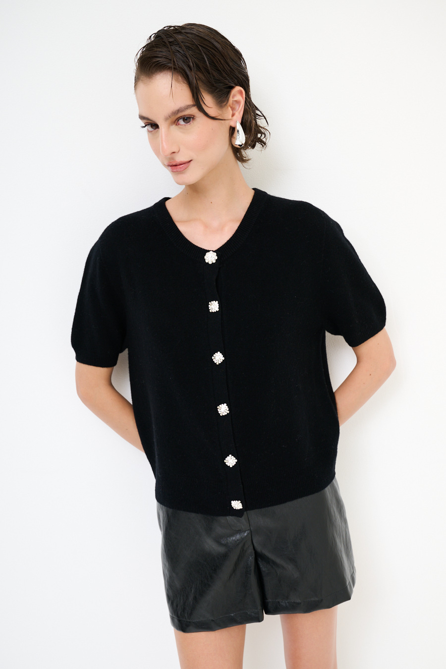 Cardigan a mezza manica con bottoni gioiello in misto cashmere.