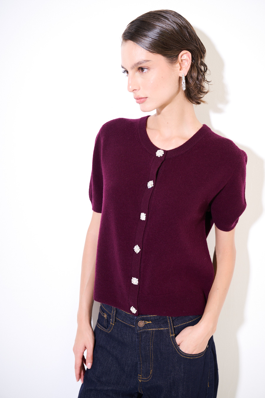 CARDIGAN MEZZA MANICA MISTO CACHEMIRE VINO
