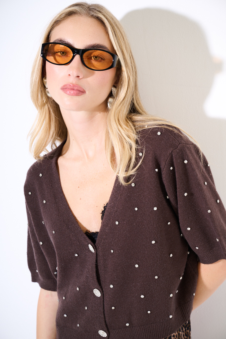 CARDIGAN MEZZA MANICA STRASS MORO