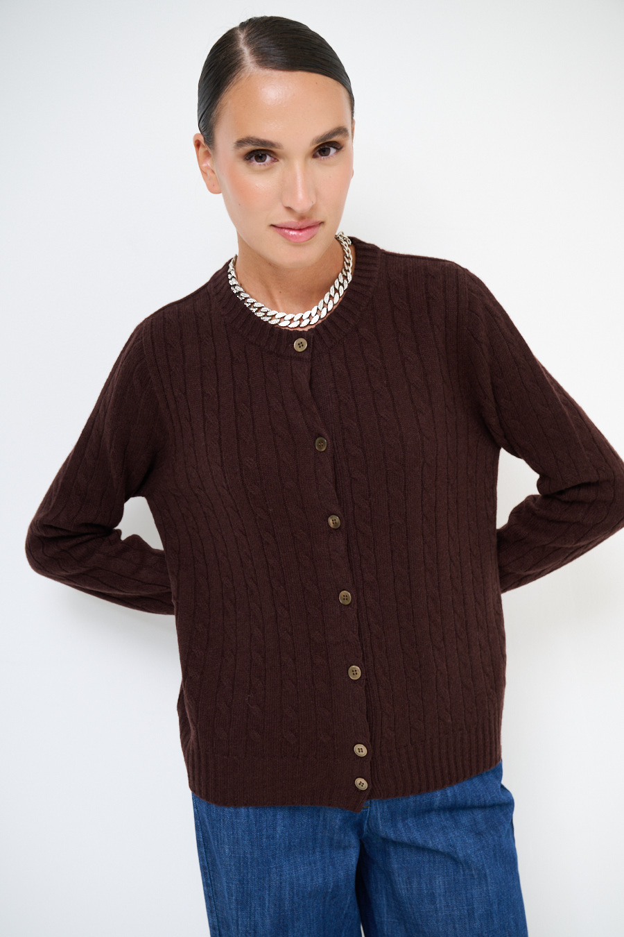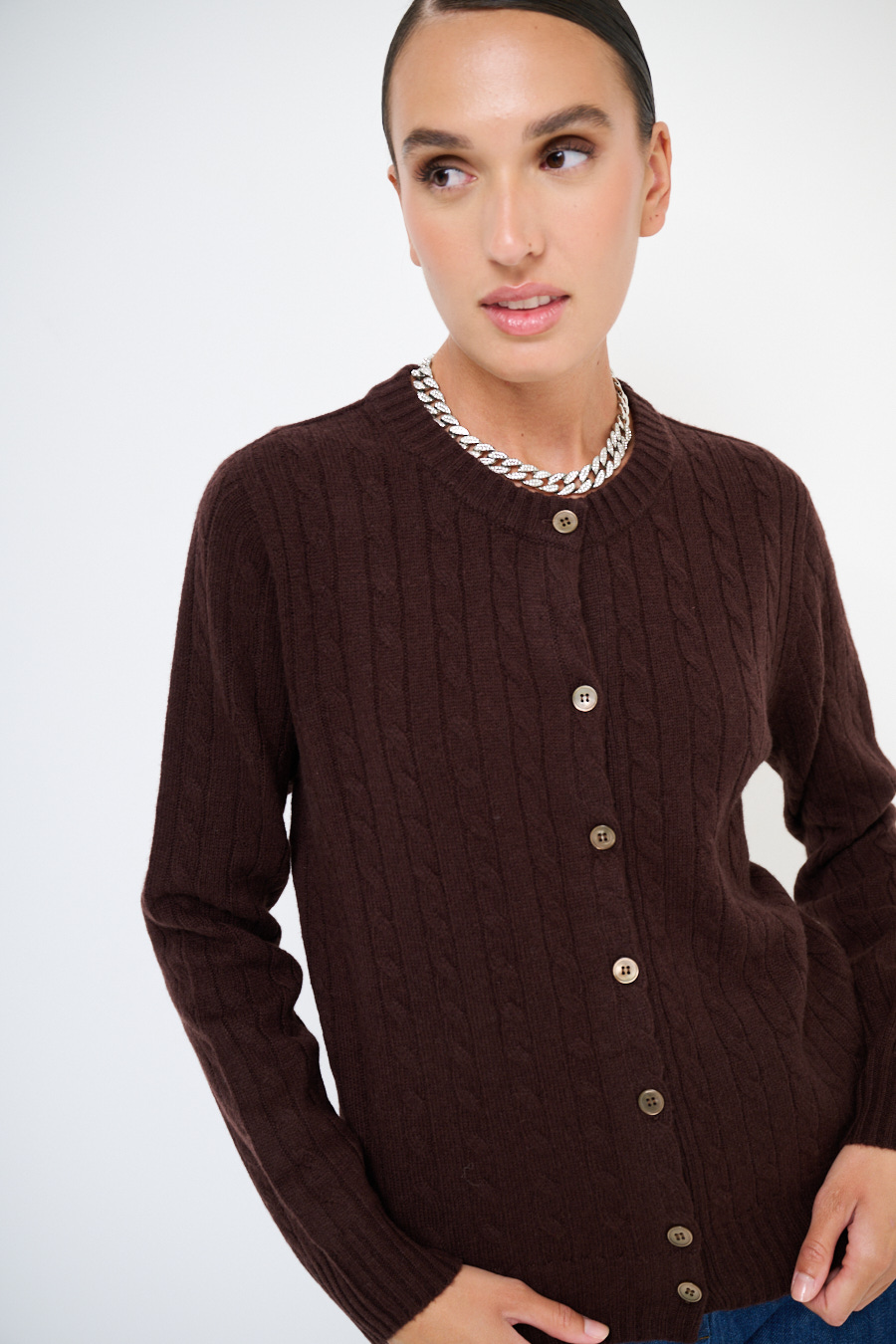 CARDIGAN OVER TRECCIA+SPACCHI LANA CACHEMIRE COFFEE