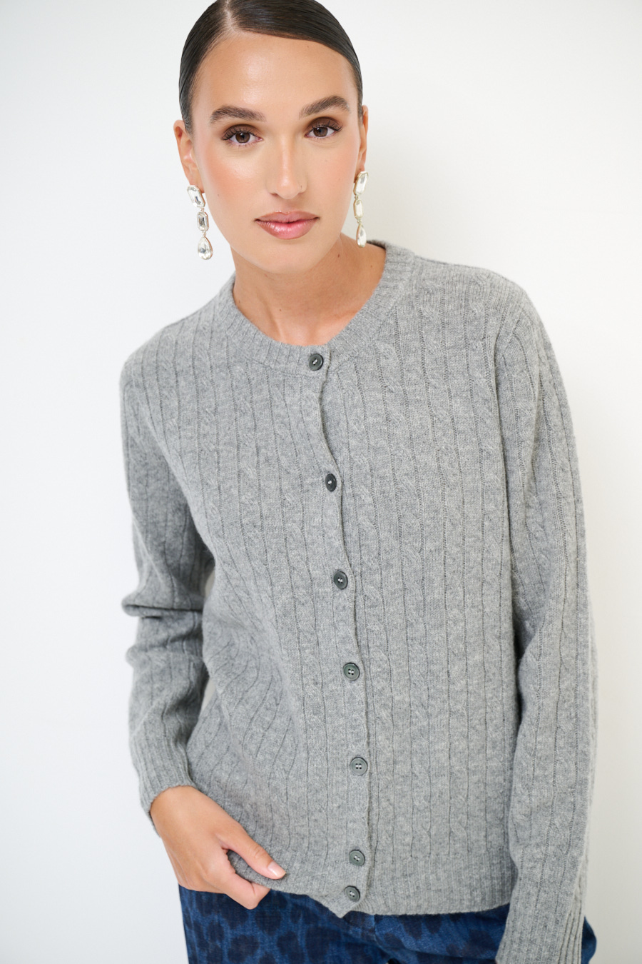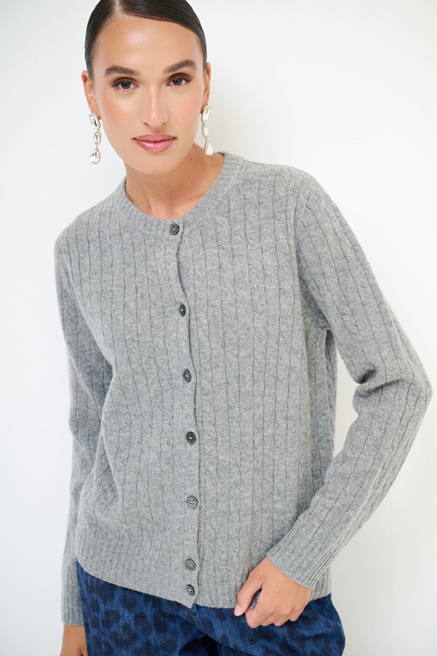 CARDIGAN OVER TRECCIA+SPACCHI LANA CACHEMIRE GRIGIO MEDIO