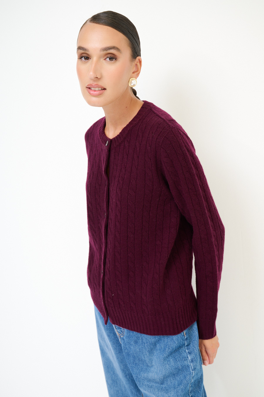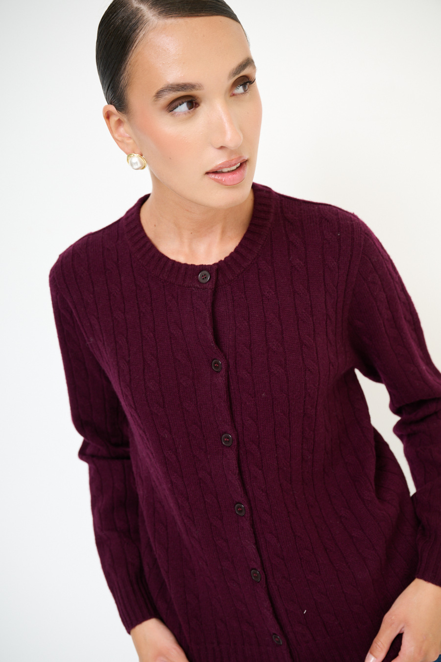 CARDIGAN OVER TRECCIA+SPACCHI LANA CACHEMIRE VINO