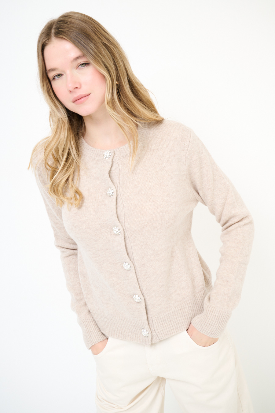 Cardigan a manica lunga a girocollo, con bottoni gioiello.