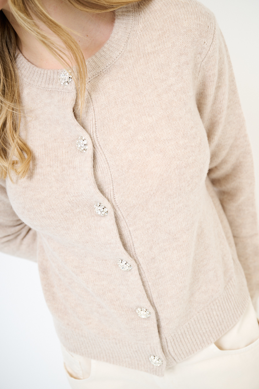 CARDIGAN PARICOLLO BOTTONI GIOIELLO BEIGE