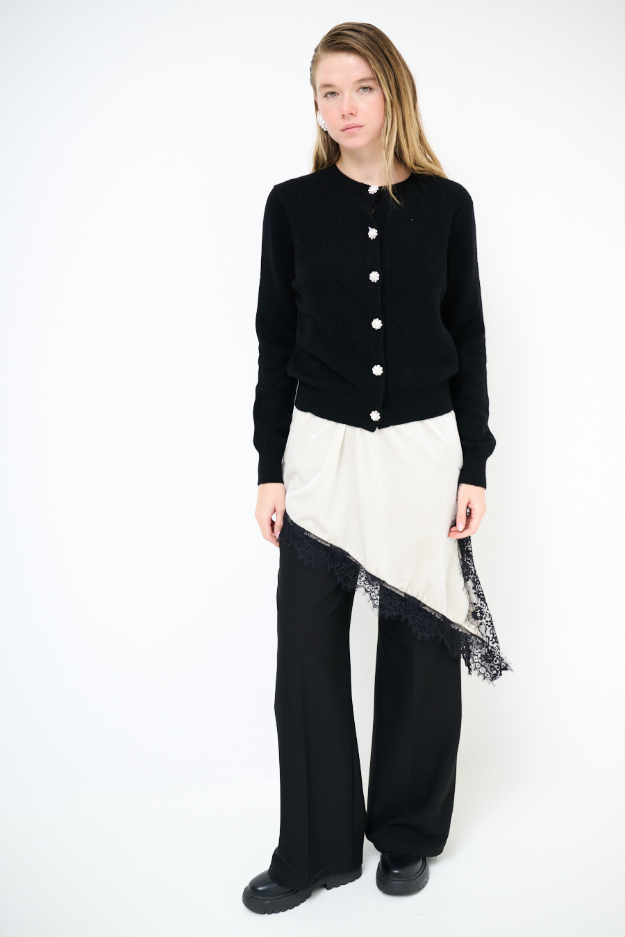 CARDIGAN PARICOLLO BOTTONI GIOIELLO NERO