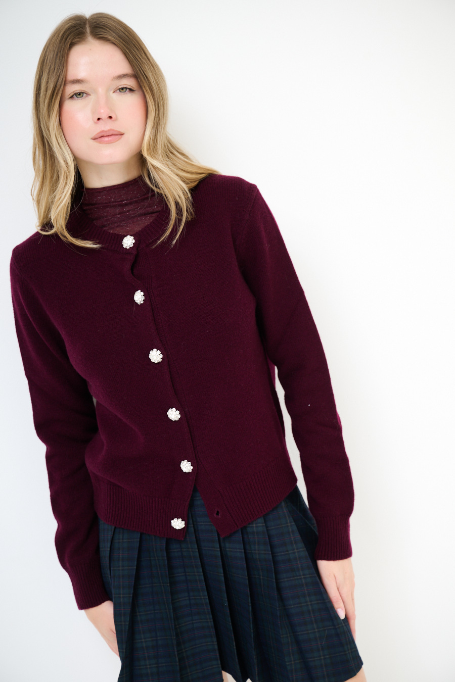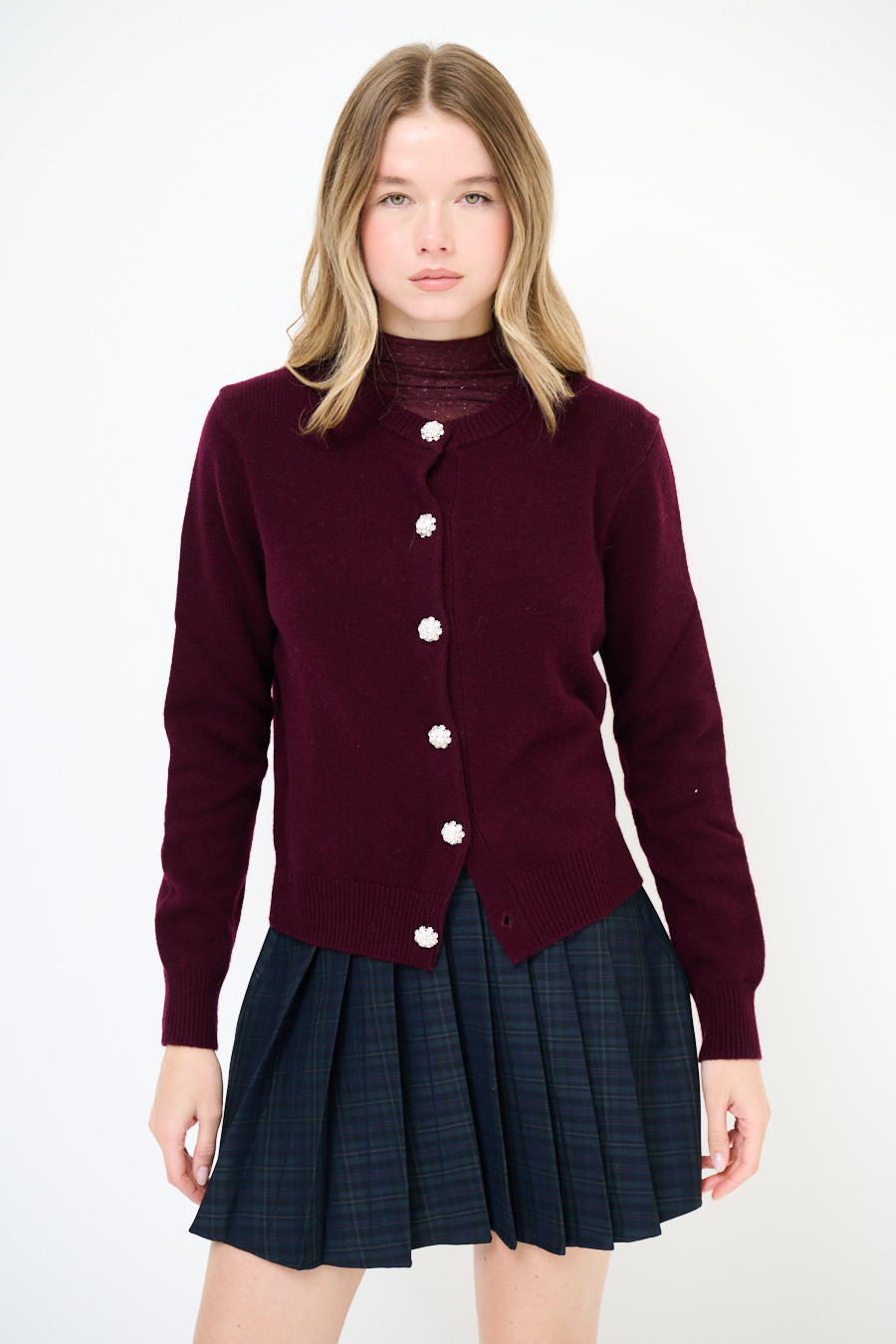 CARDIGAN PARICOLLO BOTTONI GIOIELLO VINO