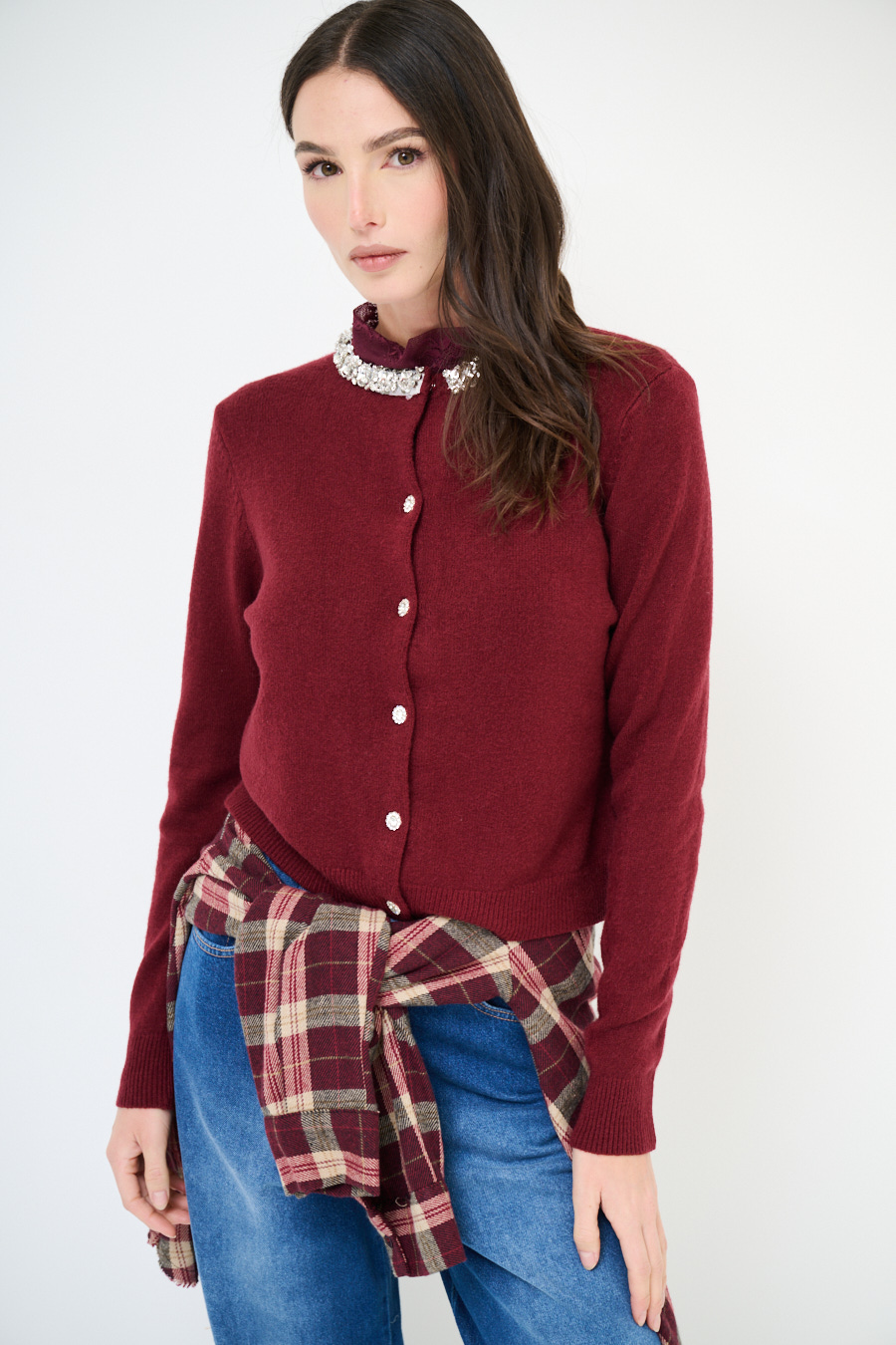 CARDIGAN PARICOLLO GIOIELLO VINO