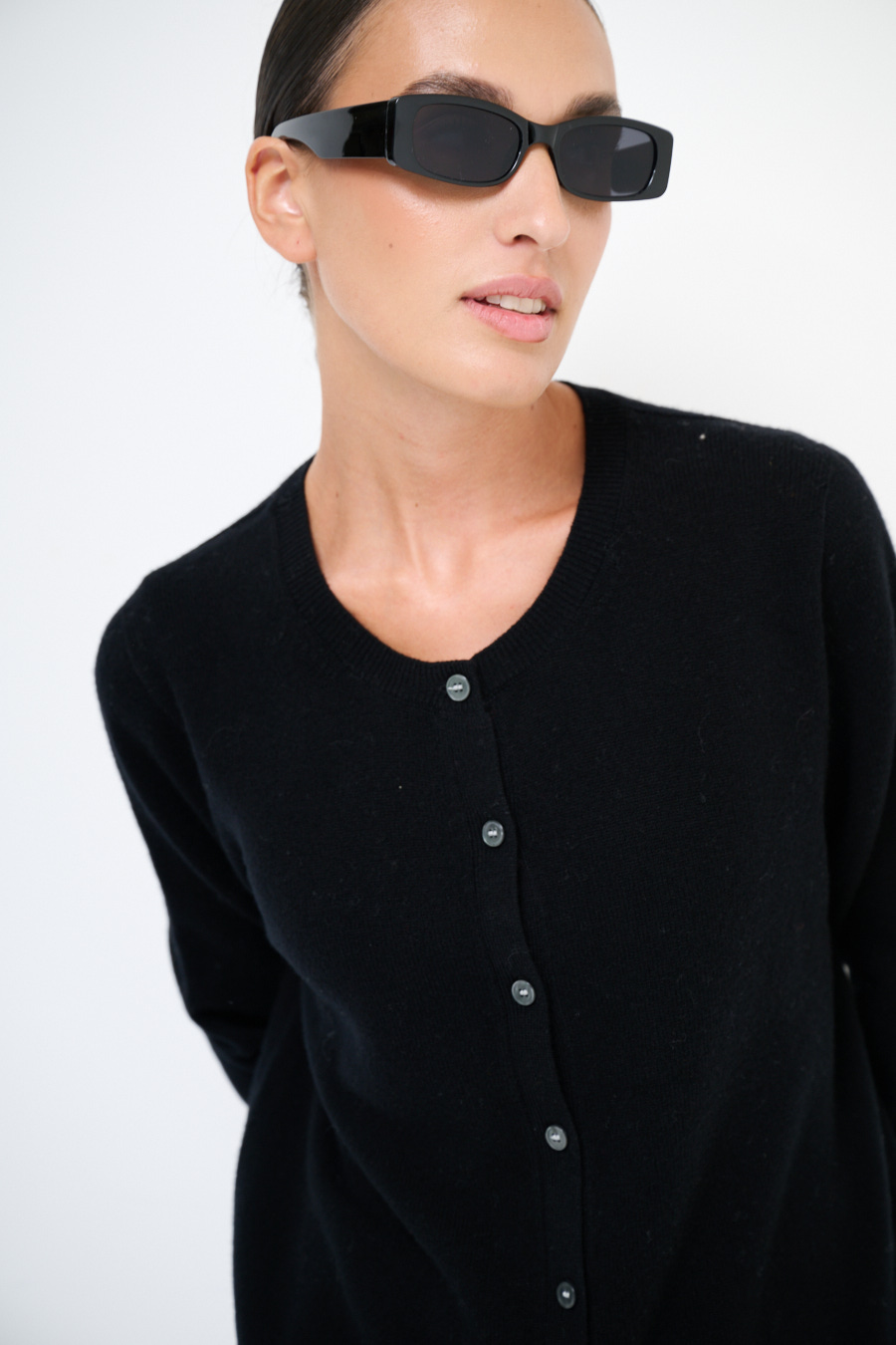 CARDIGAN PARICOLLO MISTO CACHEMIRE NERO