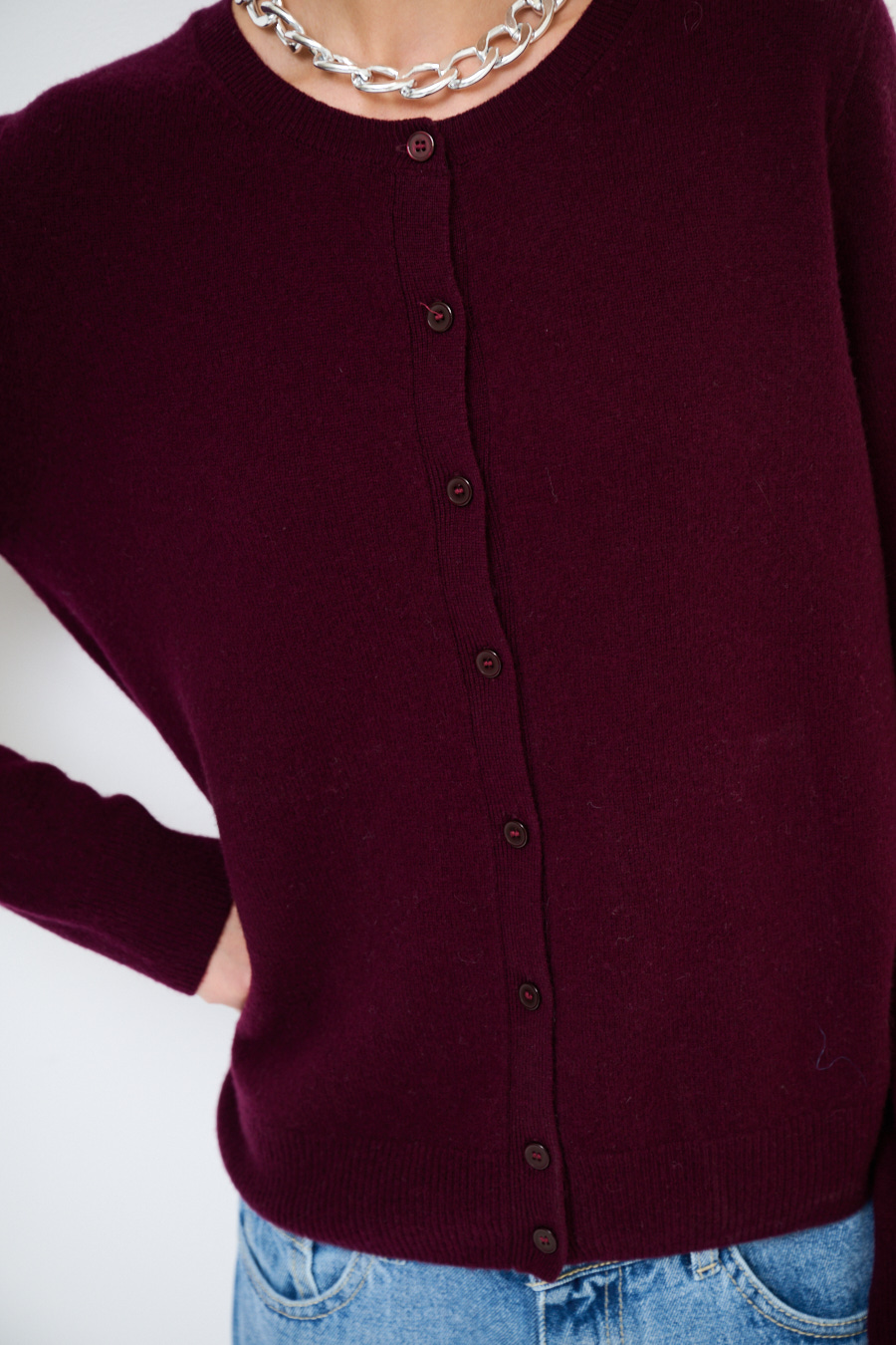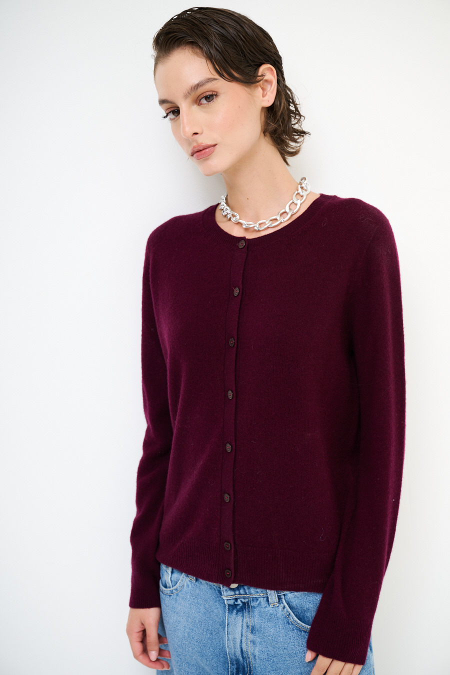 CARDIGAN PARICOLLO MISTO CACHEMIRE VINO