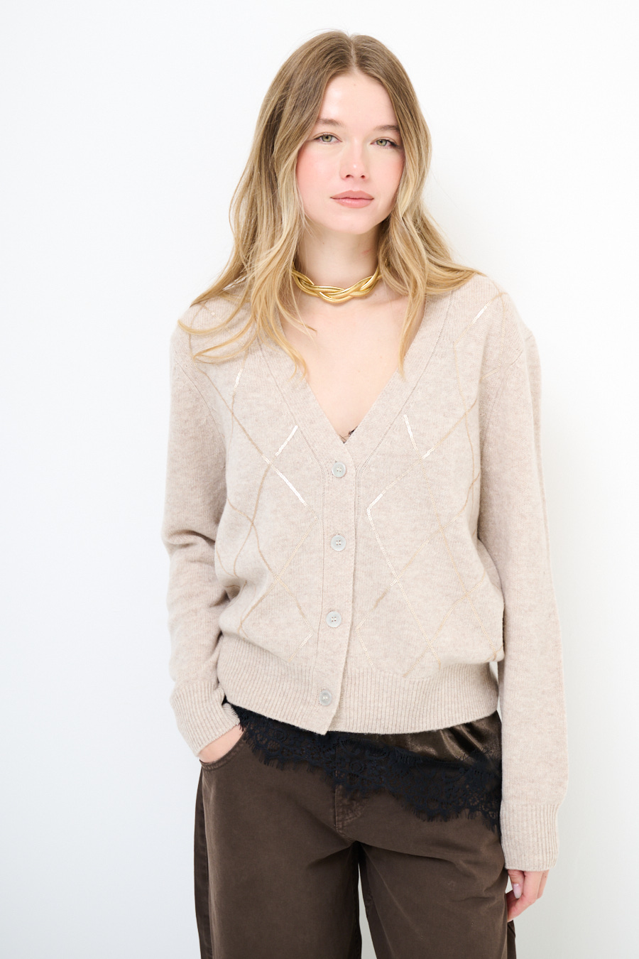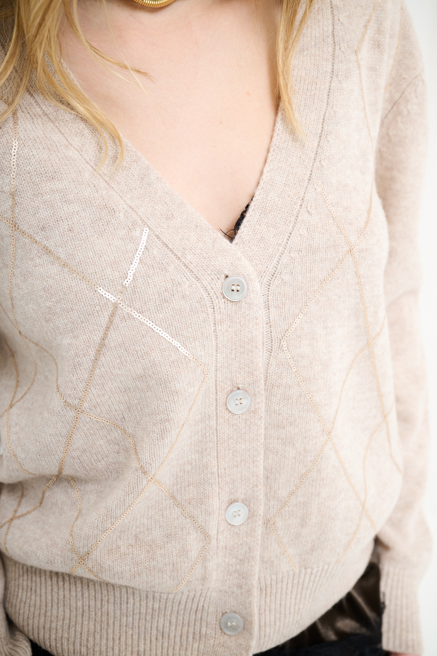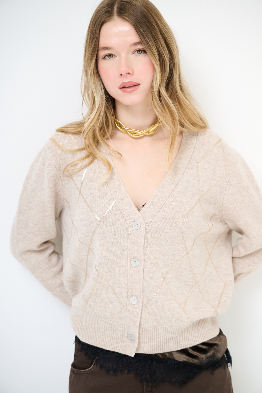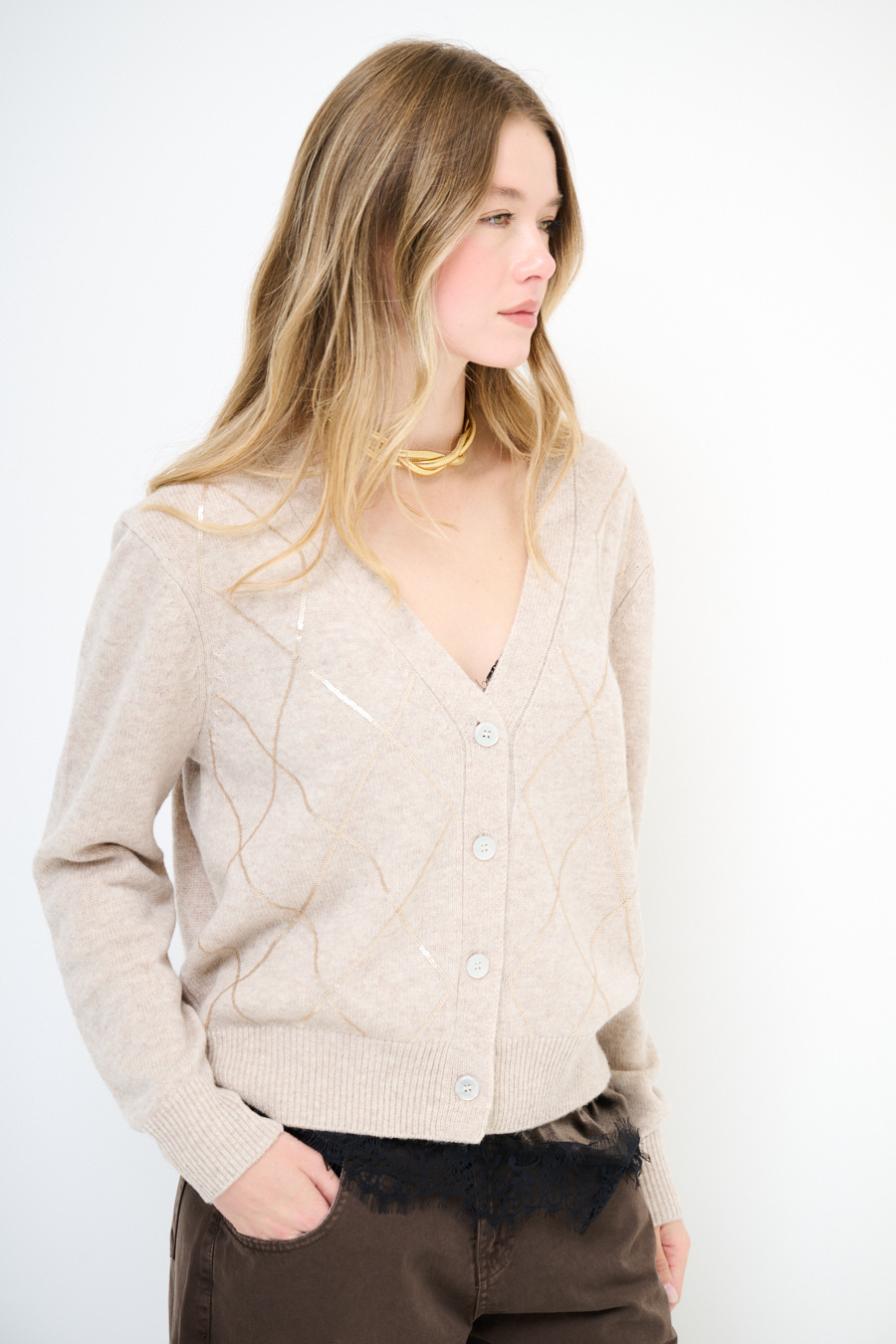 CARDIGAN V ROMBI PAILLETTES BEIGE