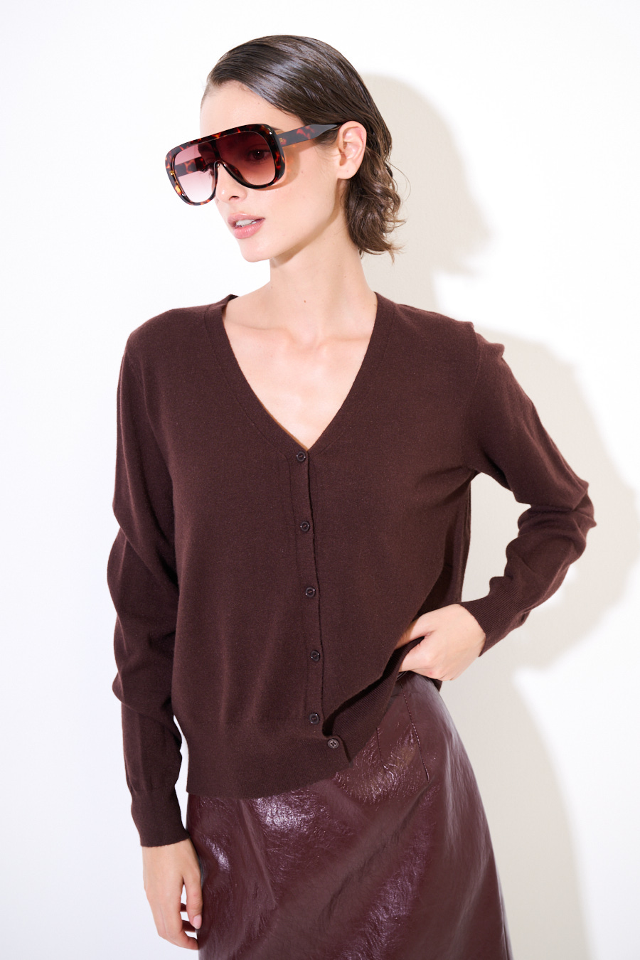 CARDIGAN VISCOSA INTEGRALE COFFEE