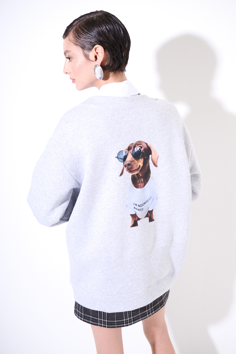 Cardigan felpato internamente, con scollo a v, abbottonatura frontale e stampa cane sul retro.