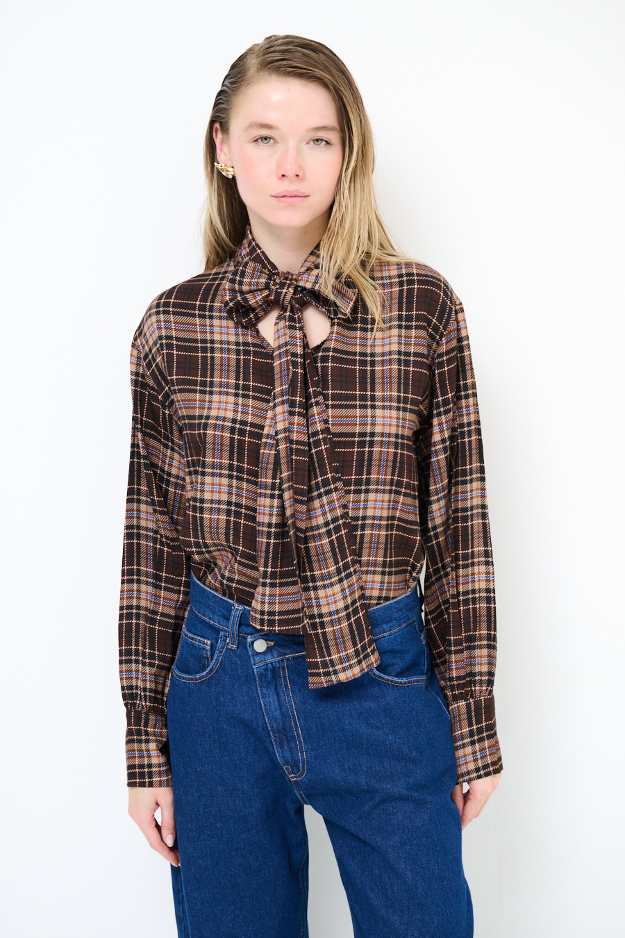 BLUSA OVER CON FIOCCO CHECK STAMPA MORO