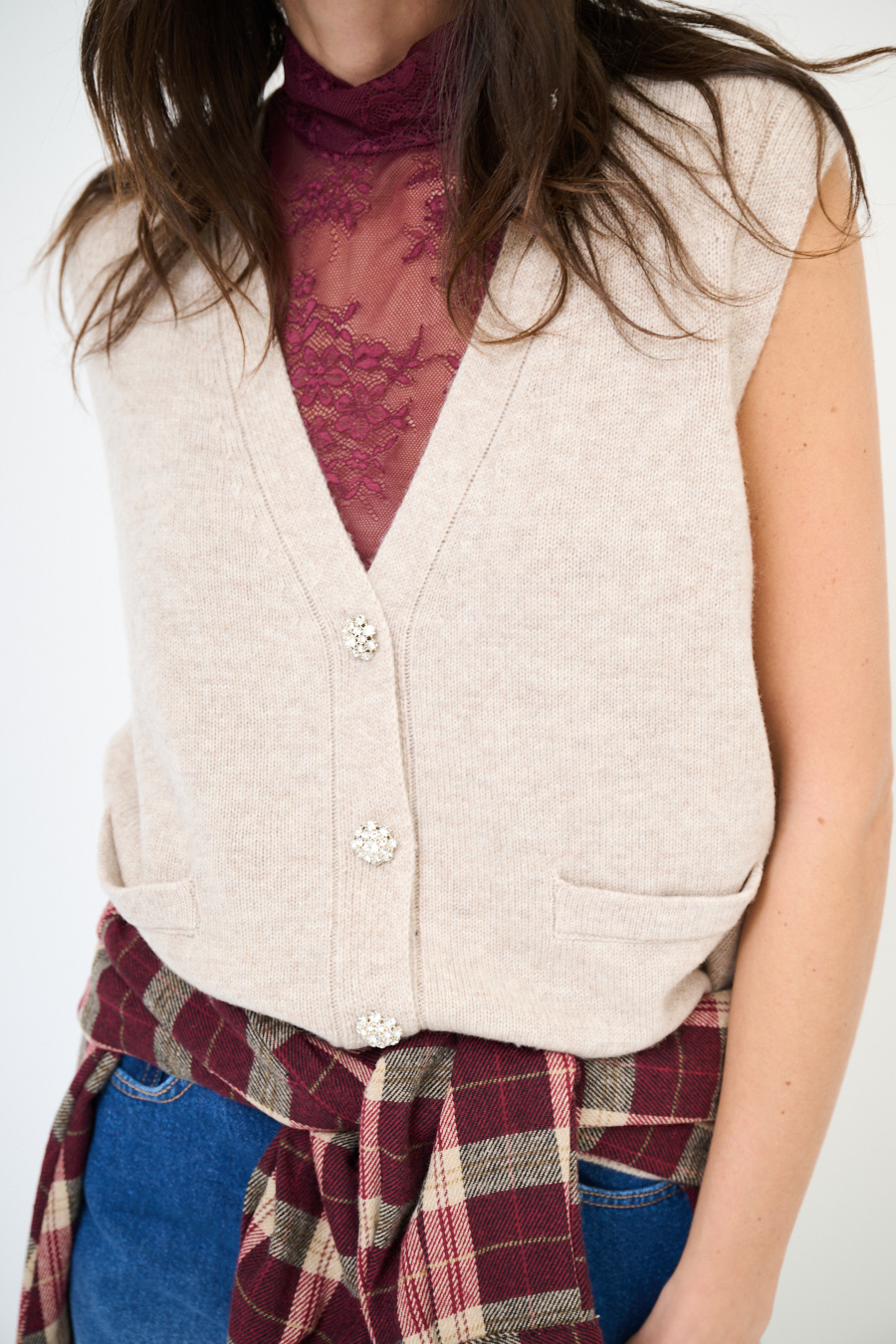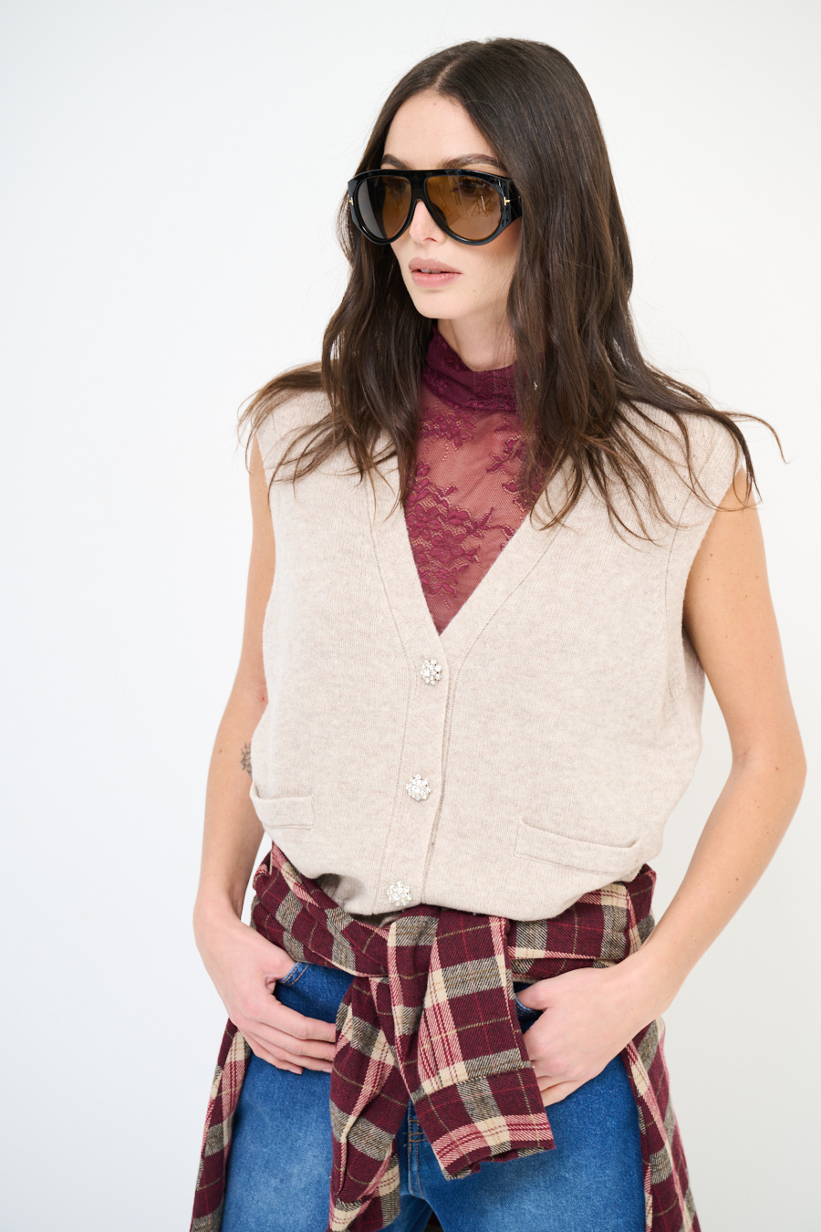 Gilet in magliam con bottoni gioiello e scollo a v.