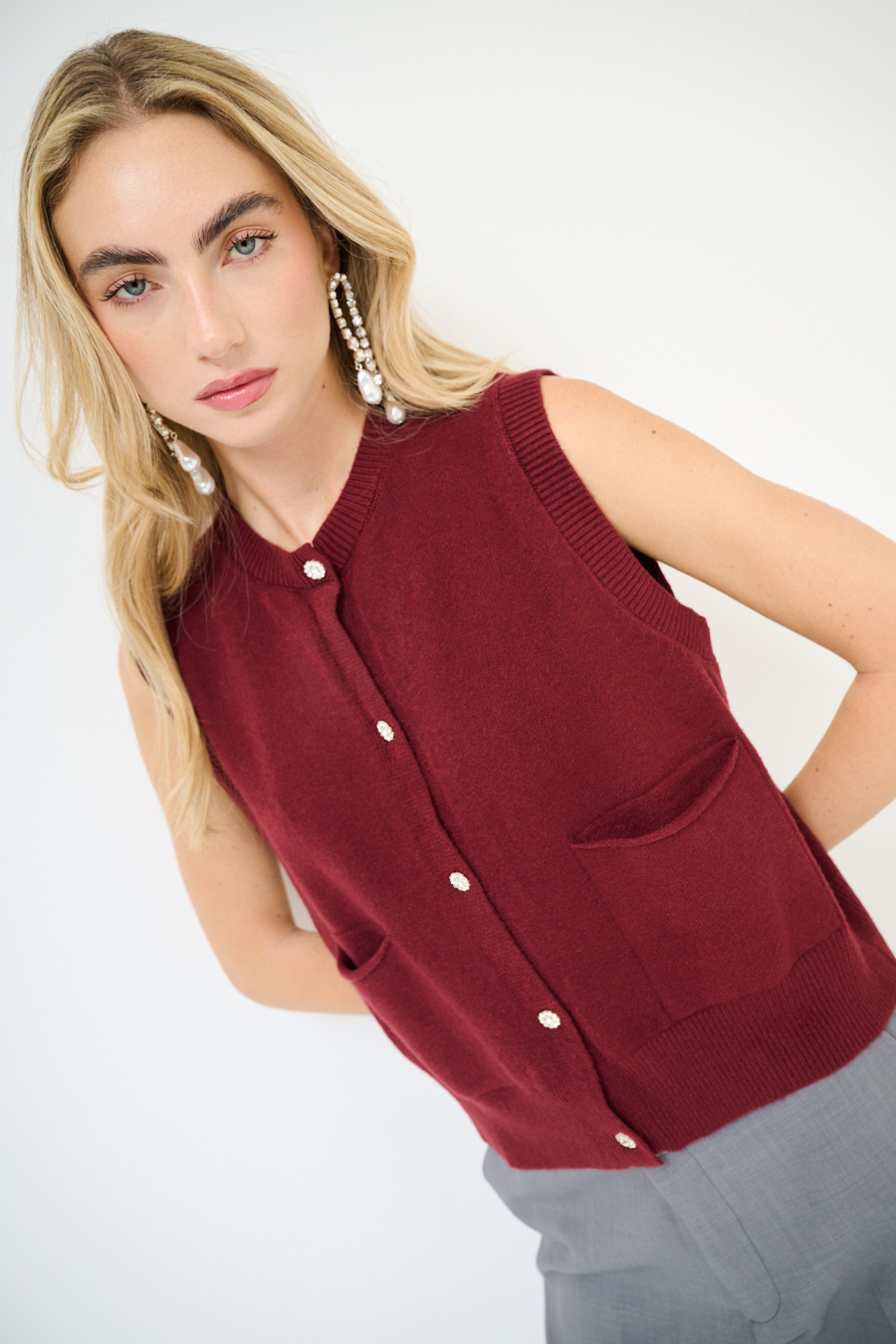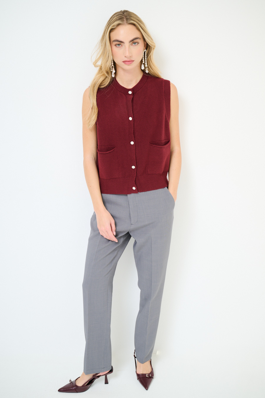 GILET CON TASCHE E BOTTONI GIOIELLO VINO
