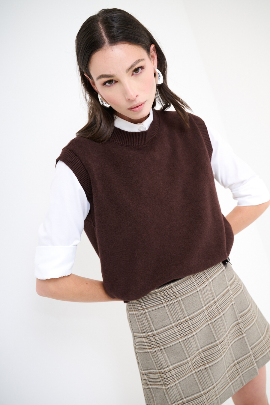 Gilet in maglia a girocollo con profili a coste.