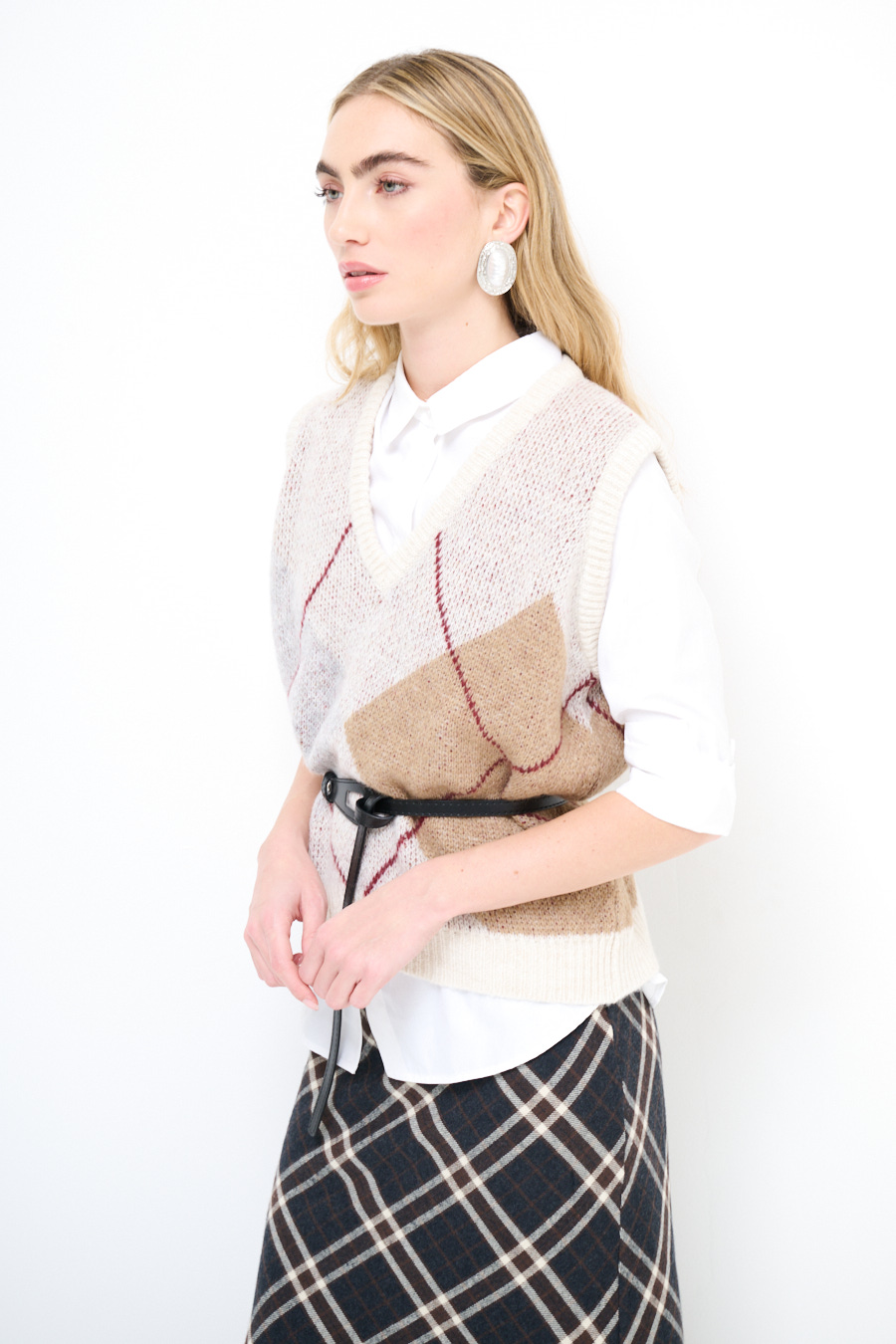 Gilet oversize a rombi con scollo a v.